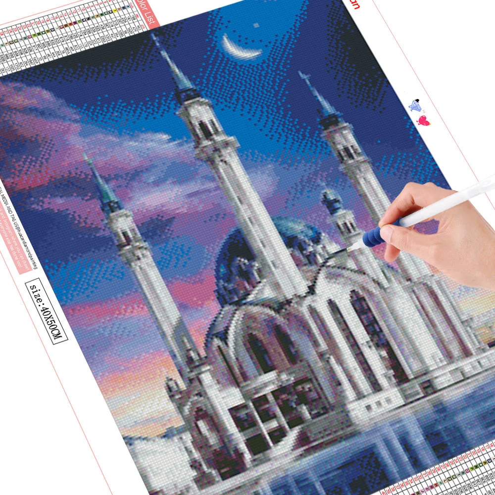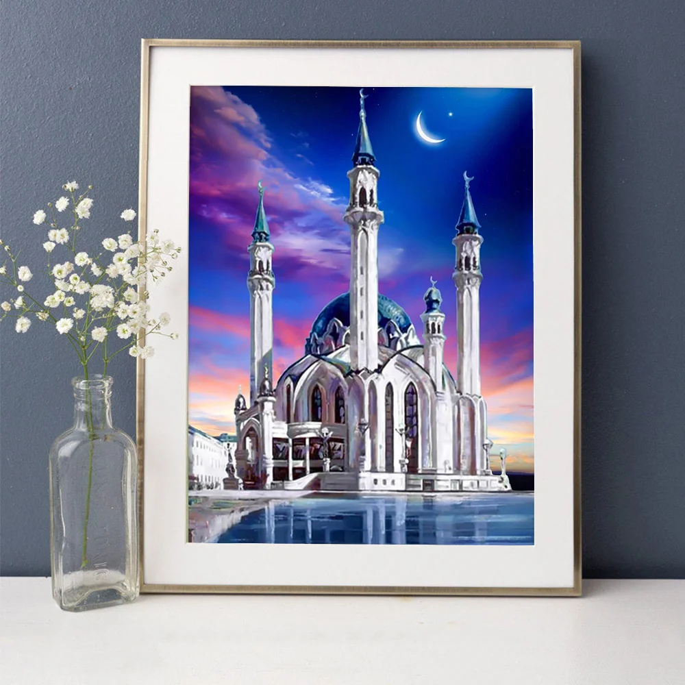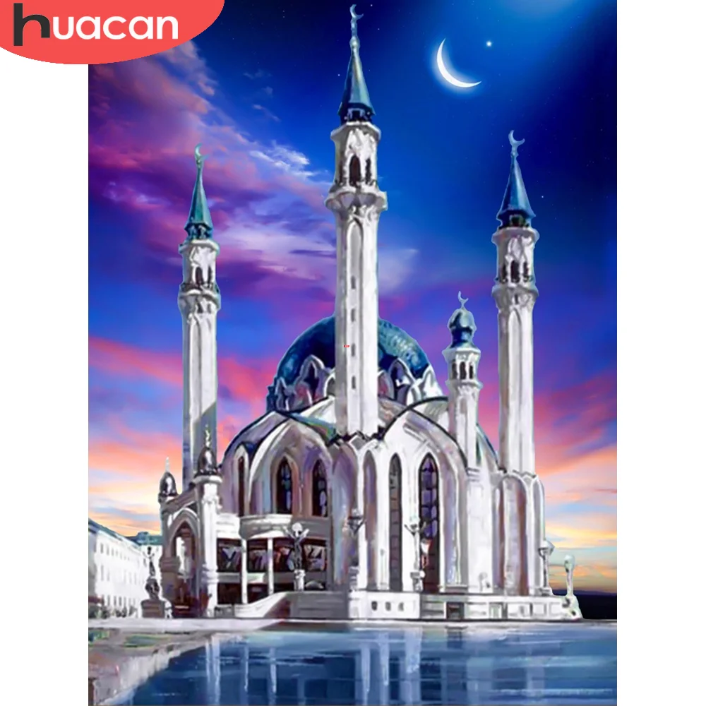 HUACAN, алмазная живопись, строительство мечети, полный квадрат, круглая вышивка, Настенный декор