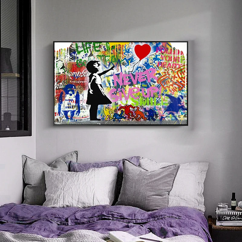 Граффити Бэнкси с изображением девушки с любовным воздушным шаром, Картина на холсте, никогда не сдавайся, постеры в стиле поп-арт для домашнего декора