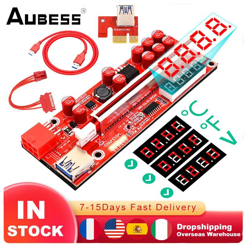 Конденсаторы Aubess 1-3 PCIE Riser 013 Pro с дисплеем температурынапряжения, графическая карта графического процессора, Удлинительный кабель, переходник для майнинга BTC