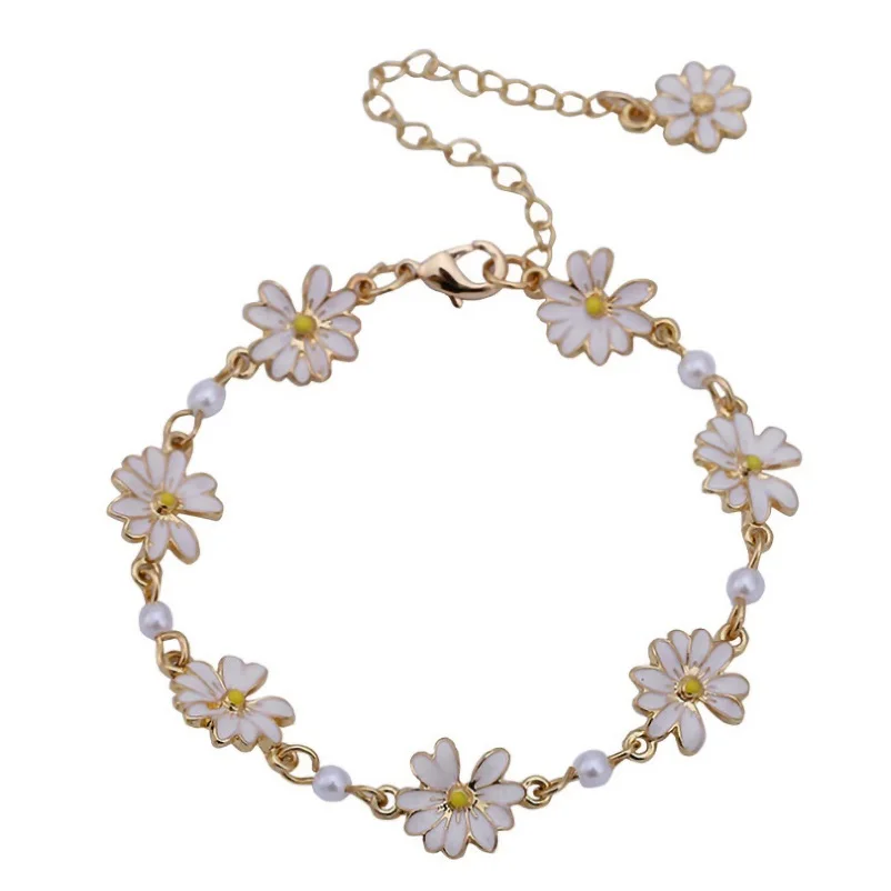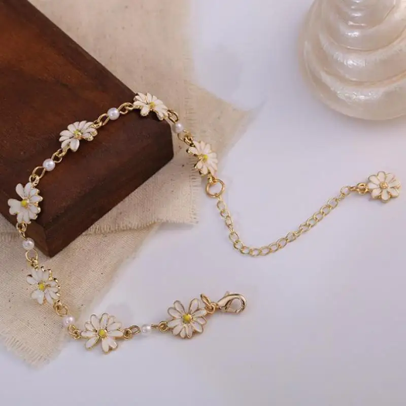 Корейские модные милые эмалевые браслеты с цветком маргаритки для минималистичного жемчужного браслета женские праздничные банкетные эффектные ювелирные изделия в подарок