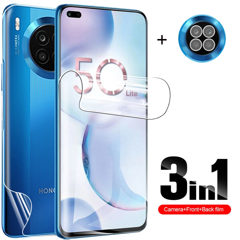3-в-1 Honor 50 Lite защитное стекло Гидрогелевая пленка 3D для Huawei Honor 50 легкая защита экрана объектив камеры на стекло Hono 50 lite