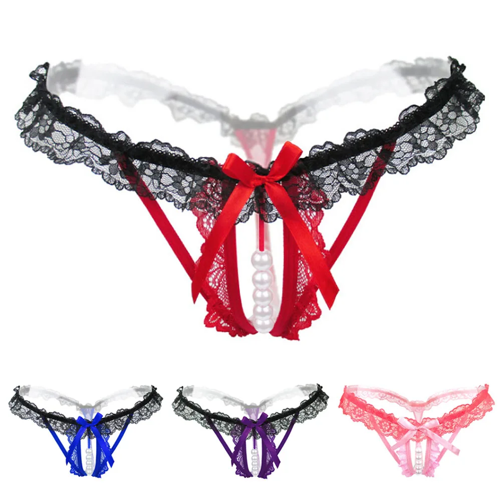 Женское нижнее белье, трусики, сексуальные трусики-стринги, трусики с открытой промежностью, нижнее белье без промежности, кружевные стринги с жемчугом