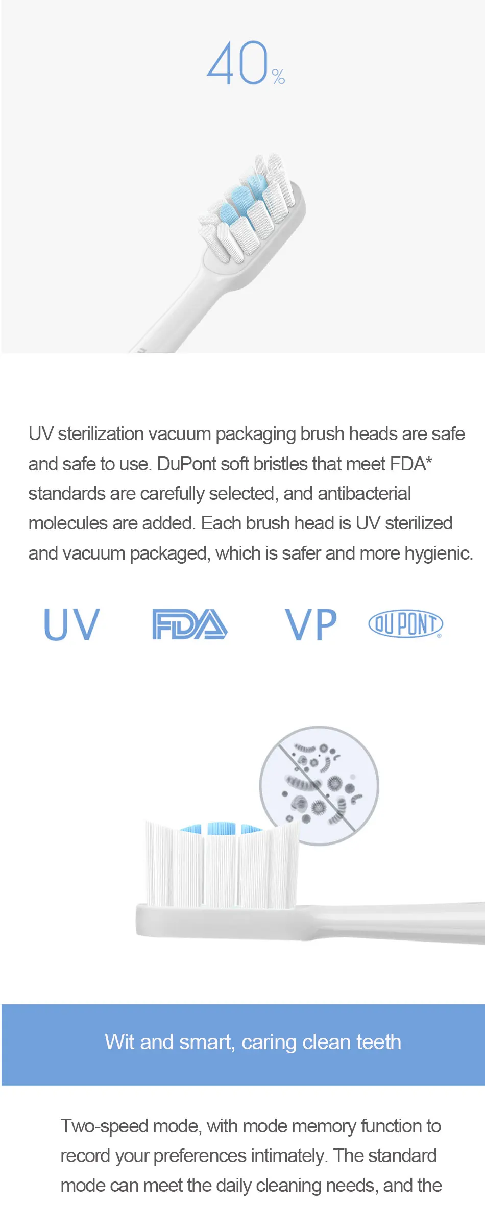 Насадки сменные для электрической зубной щетки Xiaomi Mijia, насадк...