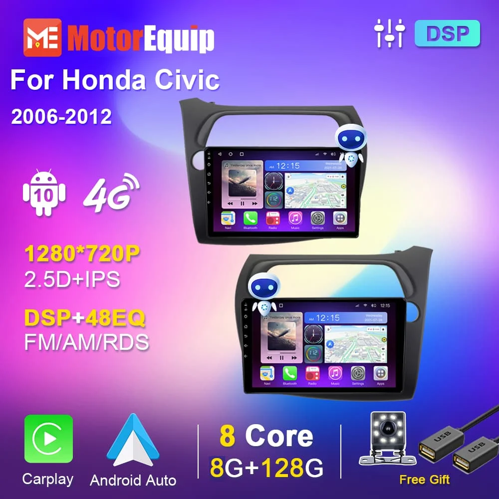 Автомагнитола на Android для Honda Civic 2006-2012, 2 Din, стереоприемник, автомобильный мультимедийный видеоплеер, навигация, GPS, стерео, DSP