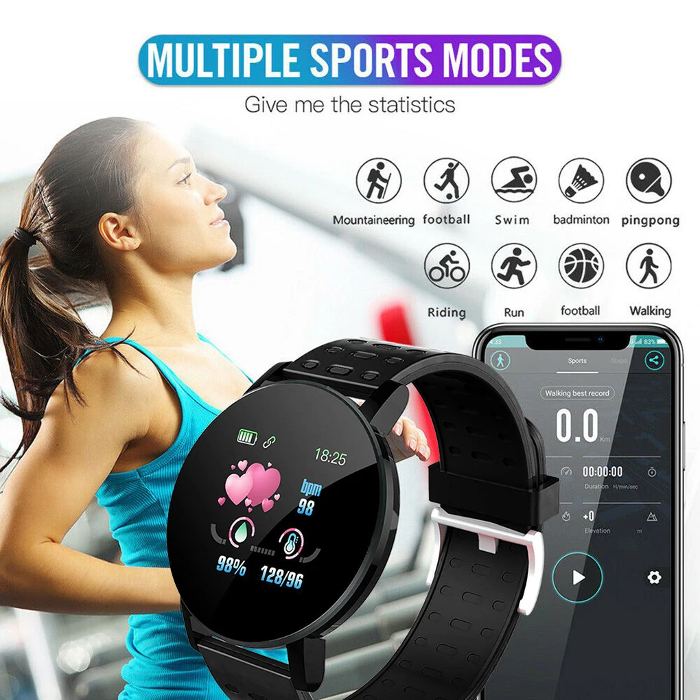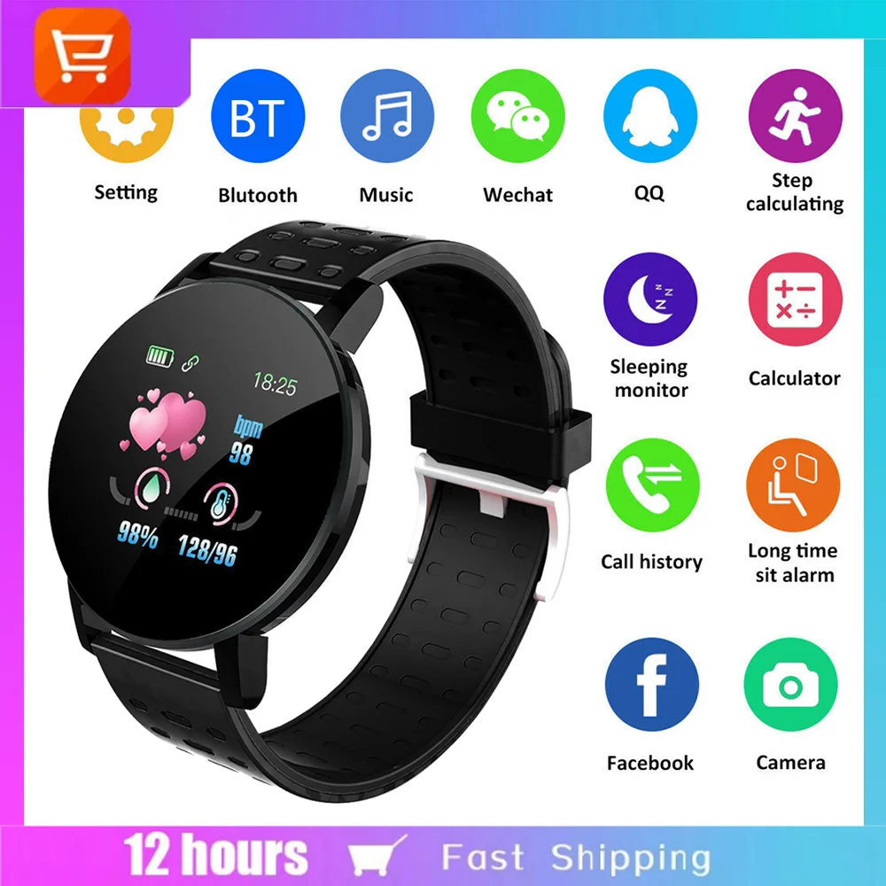 Смарт-часы 119 Plus для фитнеса, мужские и женские Смарт-часы с пульсометром и тонометром, водонепроницаемые спортивные часы с ремешком для Android и IOS