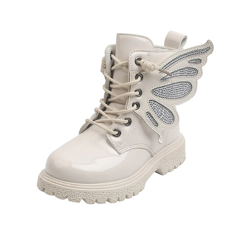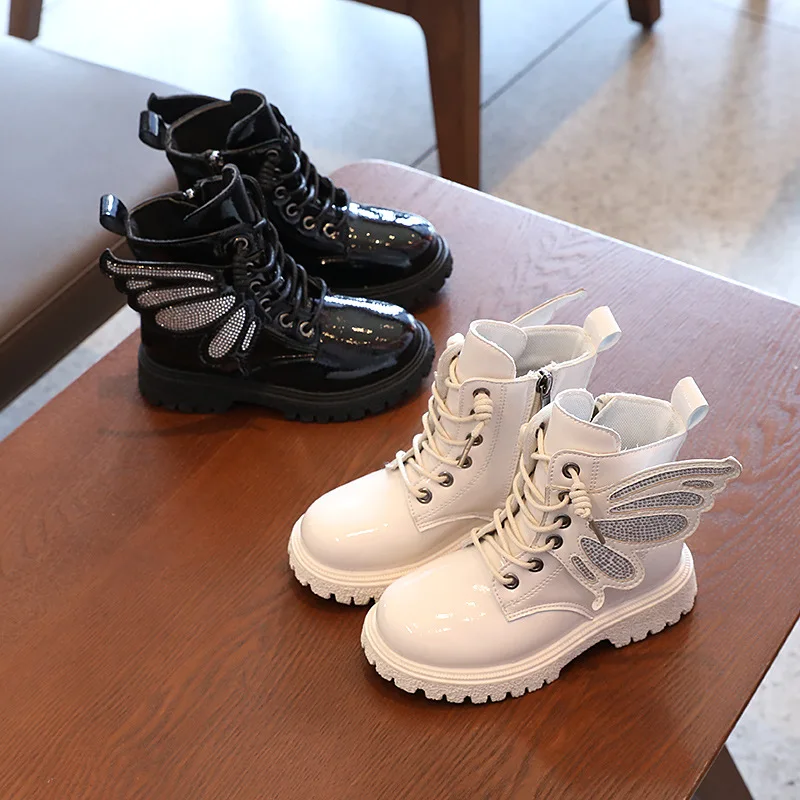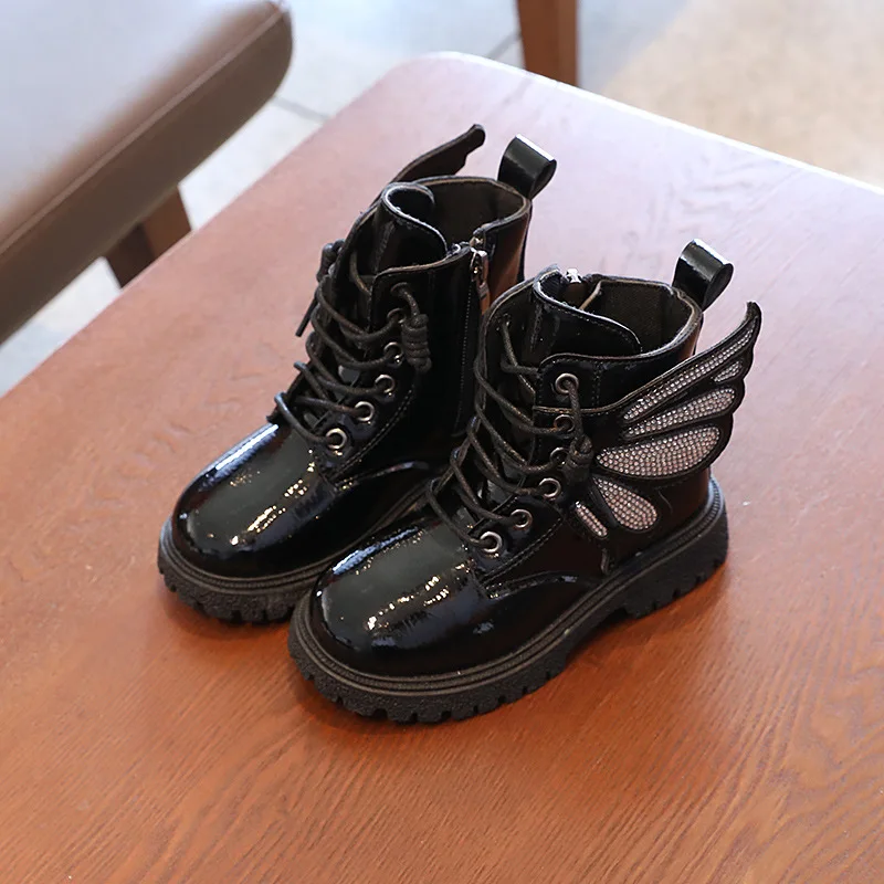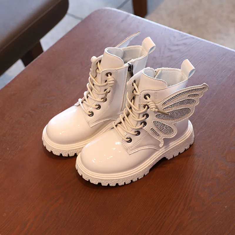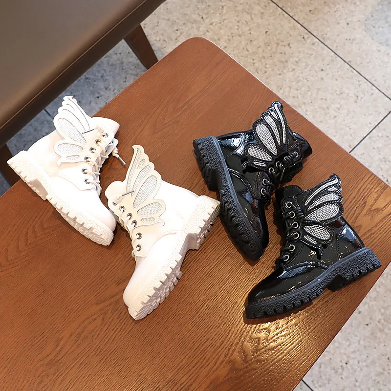 Осенне-зимние ботинки для девочек, модель 2021 года, детские зимние ботинки, ботинки Martin с крыльями бабочки, обувь из искусственной кожи на молнии для девочек