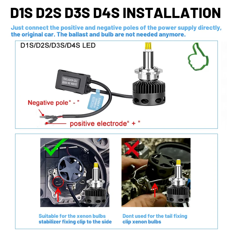 2 варианта для D серии светодиодный светильник, пожалуйста, заказывайте в соответствии с вашими потребностями* 360 светодиодов, подключите 2 контакта к вашему автомобилю напрямую, нет необходимости в балласте