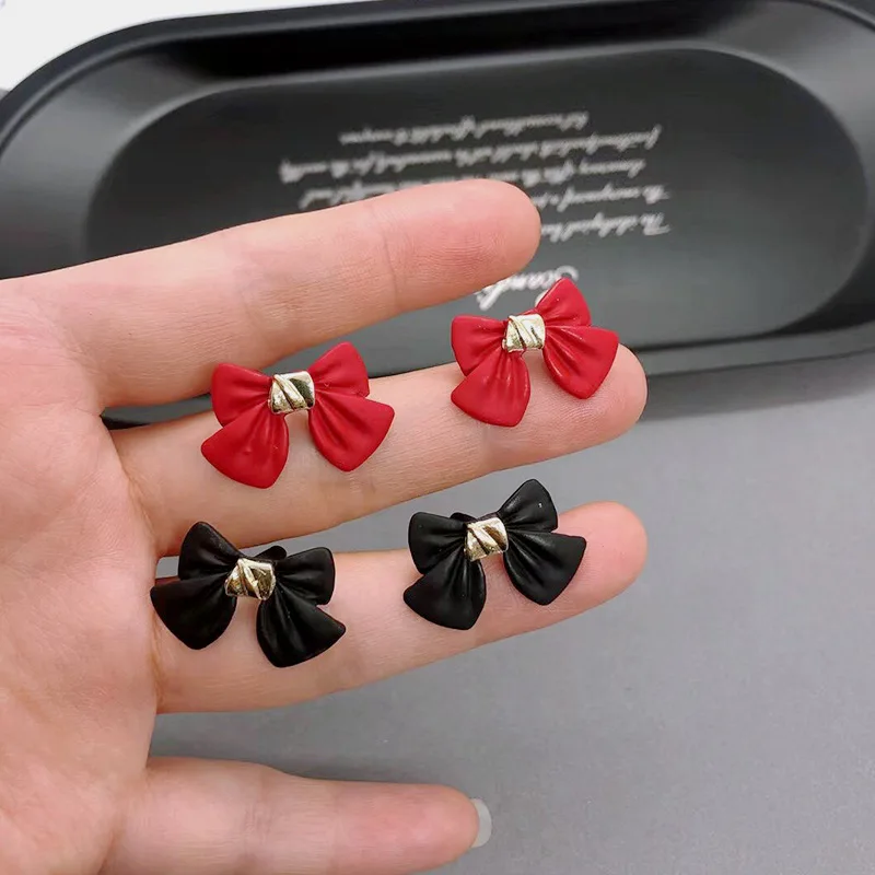 Модные Классические винтажные черные и красные серьги с бантом серьги из цинкового сплава Двойные серьги для пирсинга милый подарок ювелирные изделия аксессуары Оптовая продажа