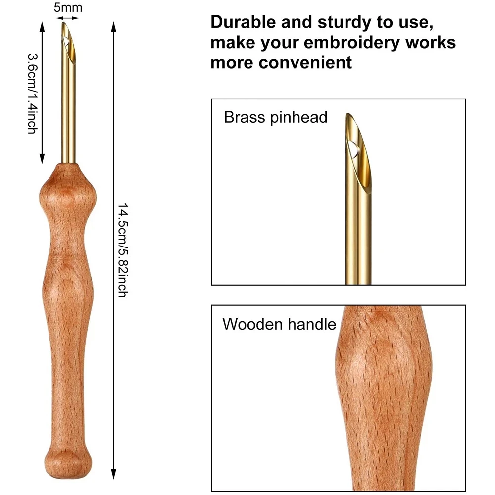 Игла для перфорации с деревянной ручкой, швейная ручка для вышивания, игла для ниток и пряжи для начинающих