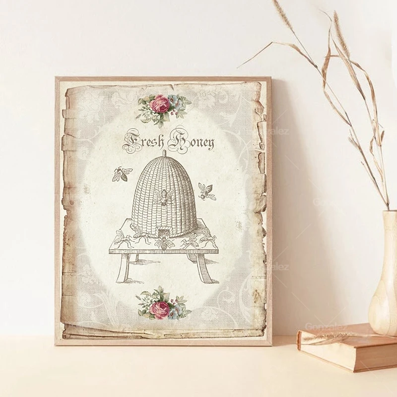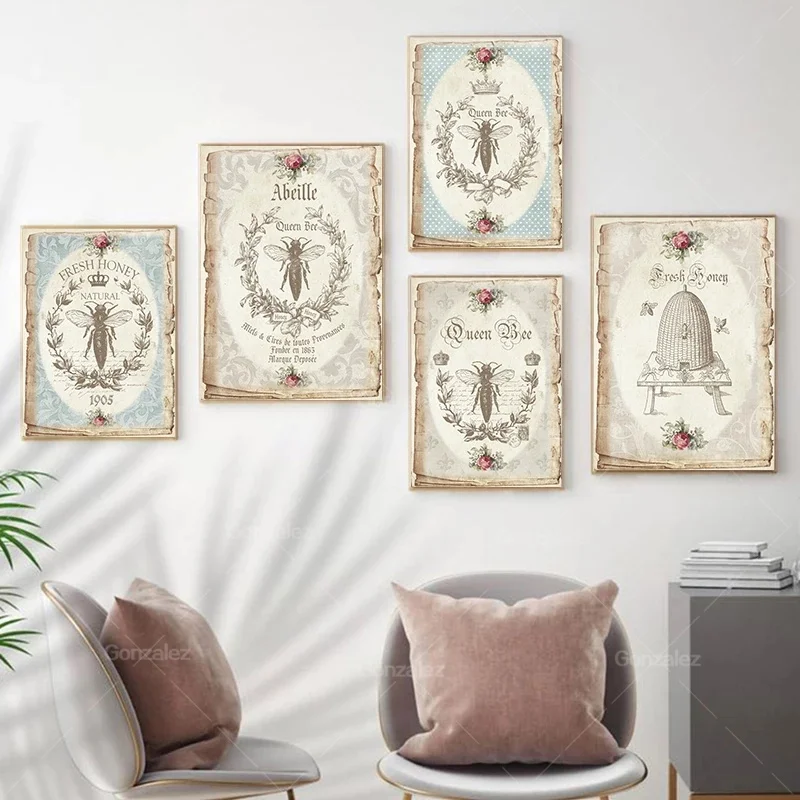 Винтажный постер и печать пчелы во французском стиле, потертая шикарная настенная Картина на холсте, ретро декоративные картины, украшение для гостиной