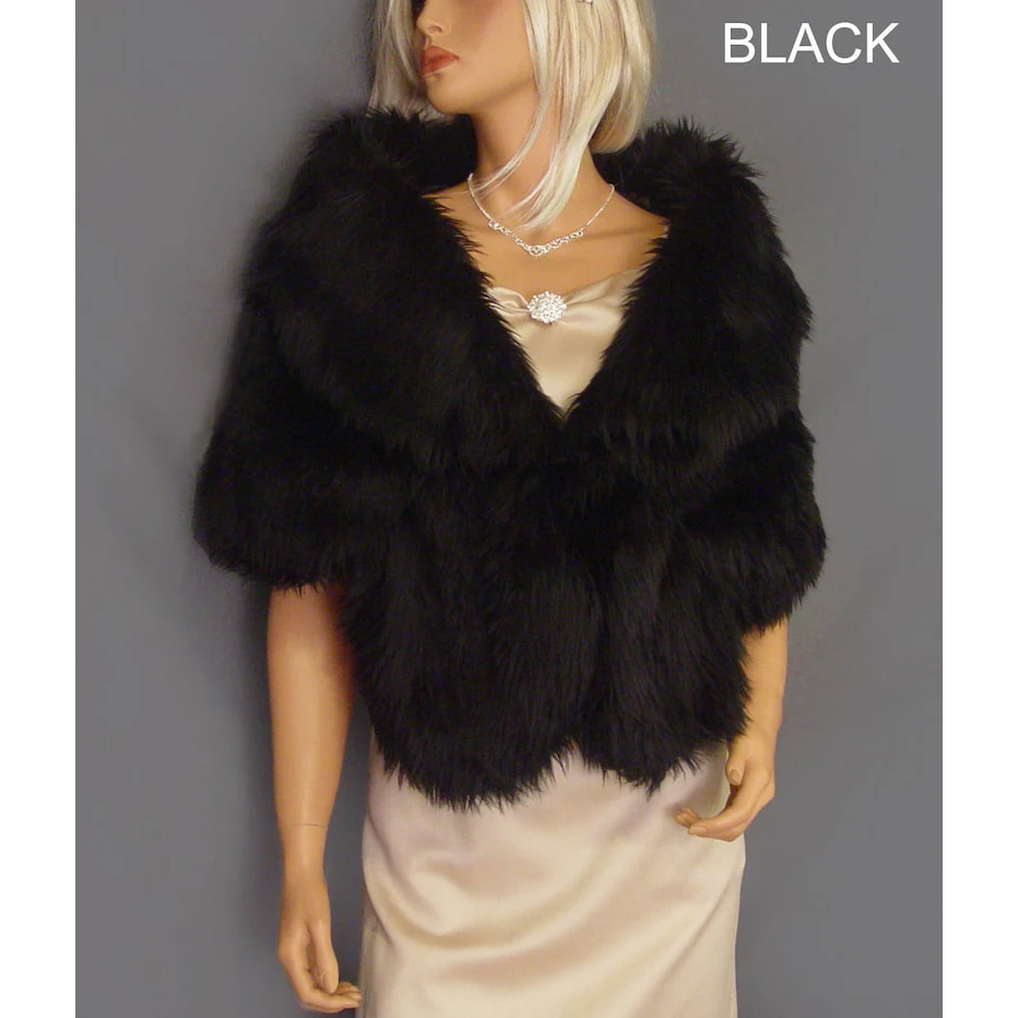 Женская свадебная накидка болеро из искусственного меха Black, винтажная накидка для подружки невесты, белая, цвета слоновой кости, женское вечернее меховое пальто, официальная шаль
