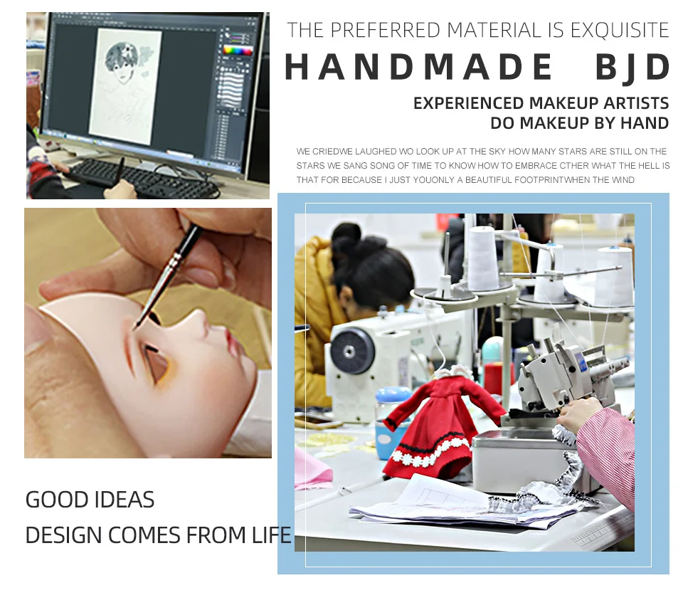 1. Сильная команда: фокусируется на кукле BJD более 10 лет, интегрирует r & d, дизайн, производство и продажи; Владеет оригинальным старшим художником, моделями, комодом, визажистом, от создания, дизайна, до формы, формовки, шлифовки, макияжа, А затем к дизайну одежды и производству до сот рабочих процедур, таких как шитье, моделирование, все завершенные опытными мастерами, представлены вашей кукле BJD каждый стиль уникален и высоко Эстетическая ценность искусства.2. Отборные высококачественные исходные материалы: отборная Высококачественная смола, изысканная и гладкая, удобная на ощупь.3. Изысканный трехмерный макияж: профессиональная команда макияжа, передовые чистые ручные технологии распыления, чтобы создать реалистичный тонкий макияж!4. Переменное моделирование DIY: гибкие соединения, сильная пластичность, различные части могут быть преобразованы по желанию и позе; Также можно изменить макияж, одежду, глаза, волосы и стайлинг.5. Персонализированные настройки: ручная работа, в соответствии с вашими требованиями, настроить вашу эксклюзивную куклу BJD.6. Изысканная подарочная упаковка: фирменная официальная Изысканная упаковочная коробка, Подарочная новая сфера, более красивая и приличная.