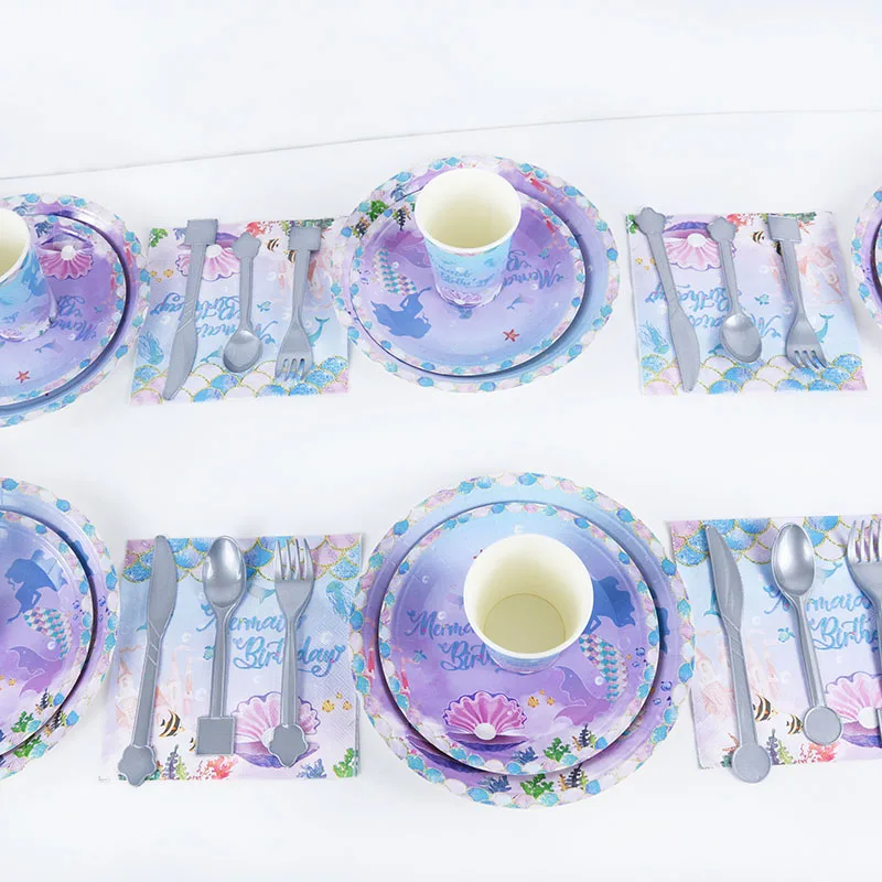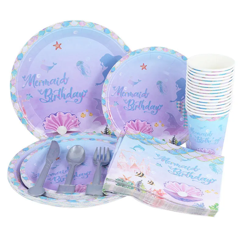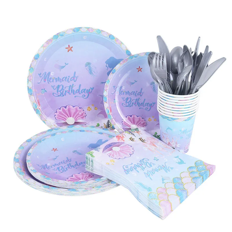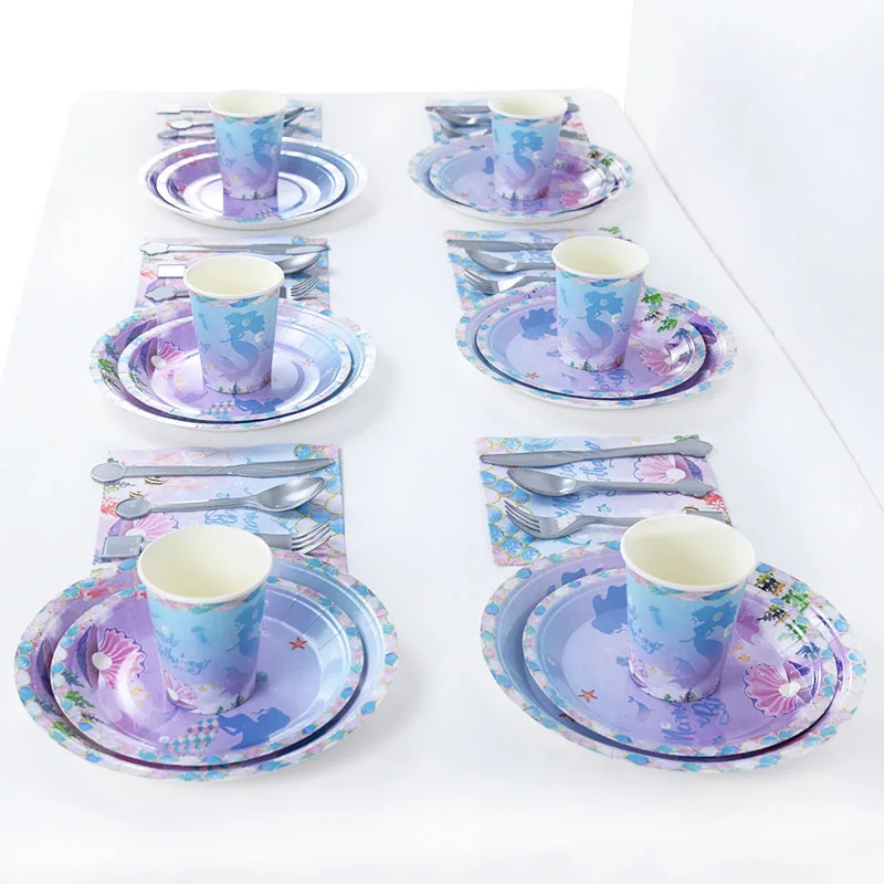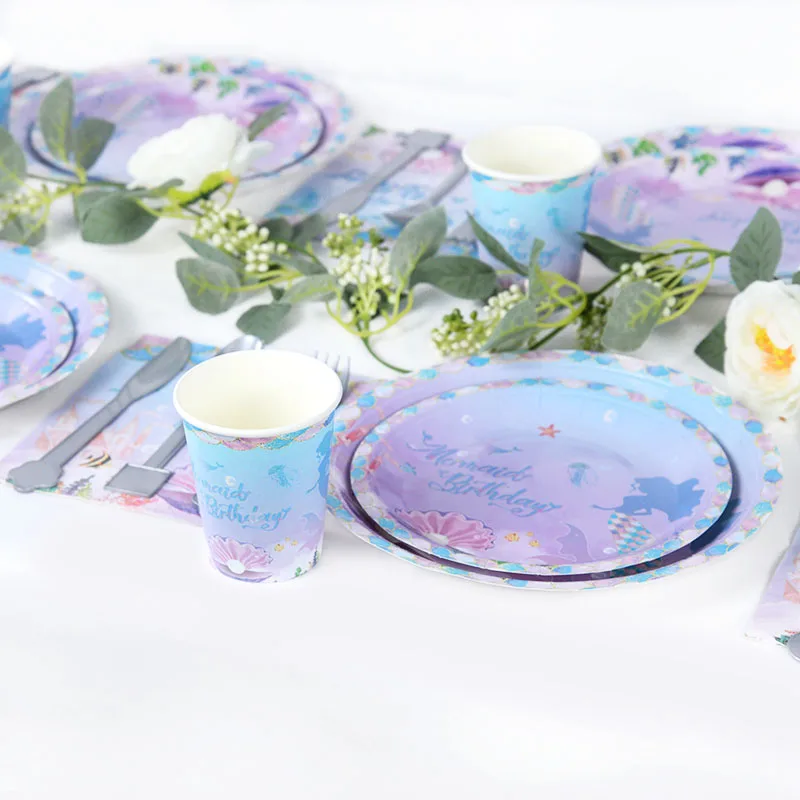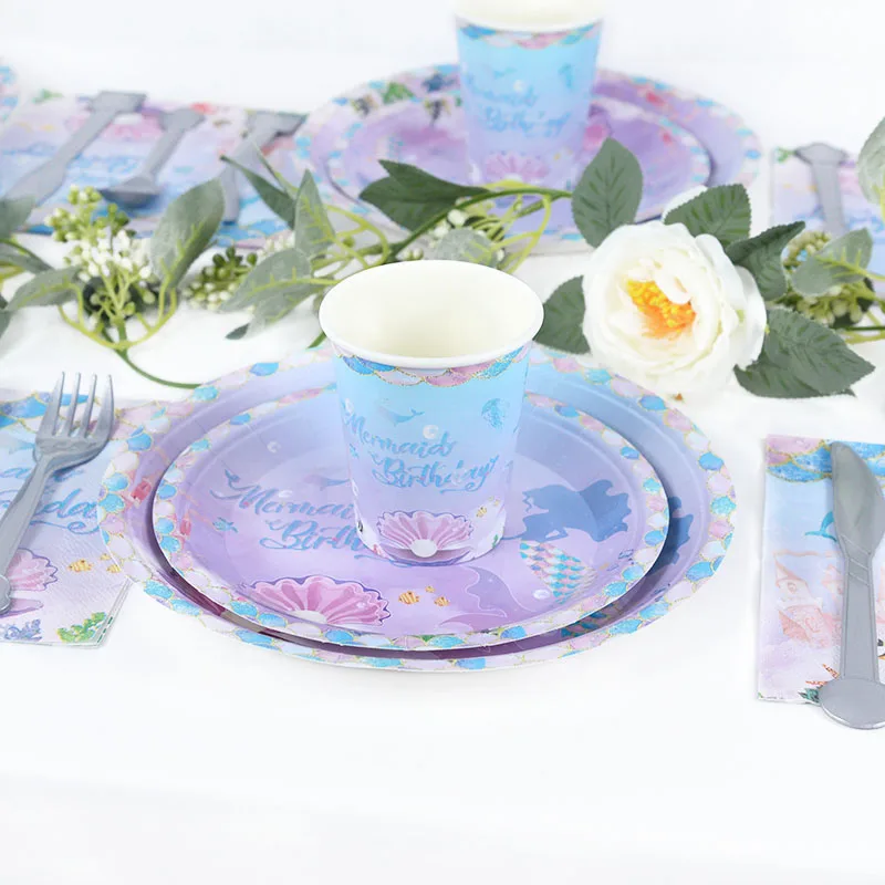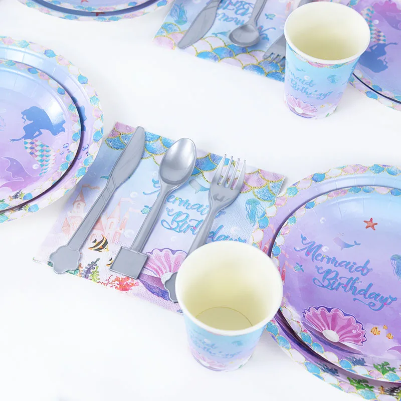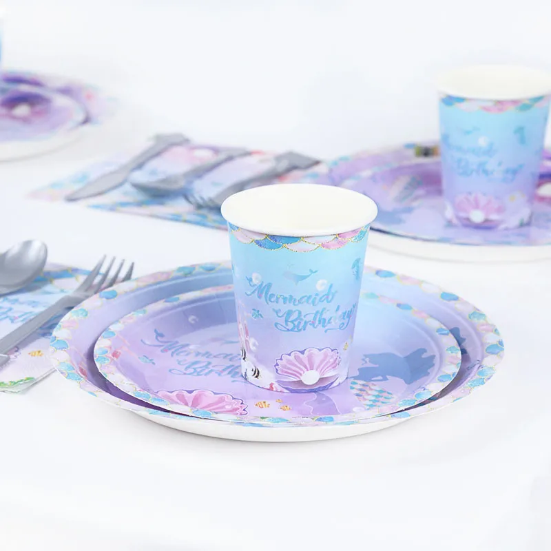 Одноразовая посуда русалка для вечеринки, бумажная тарелка для дня рождения с маленькой русалочкой, кружка для салфеток, подарочное украшение для будущей мамы