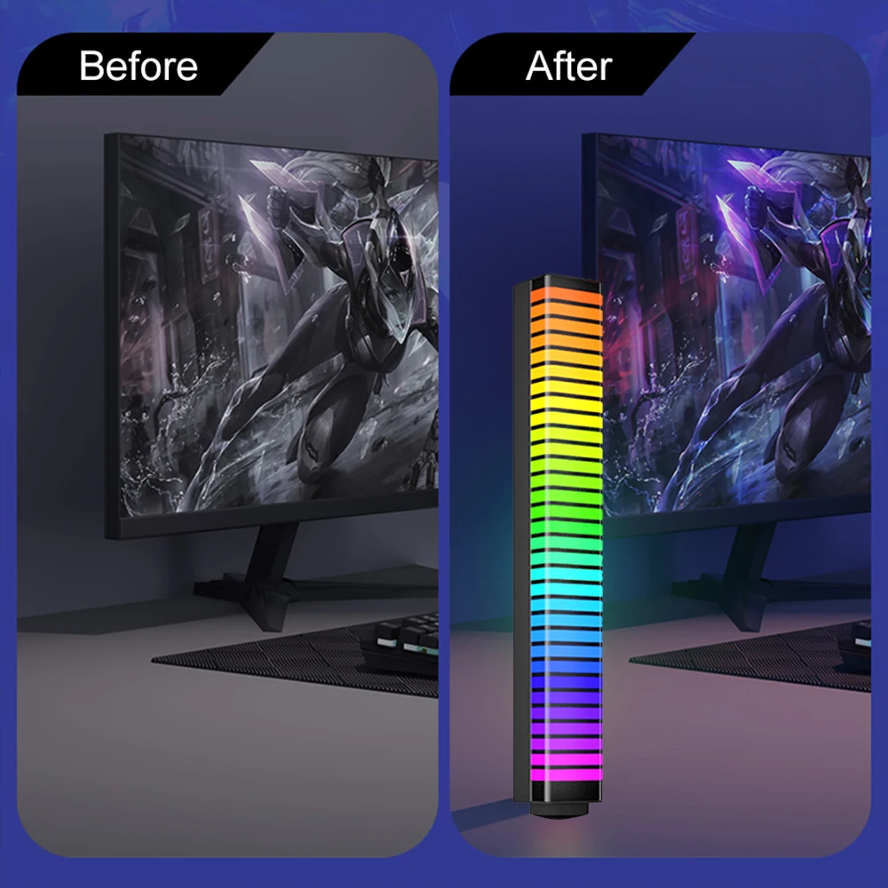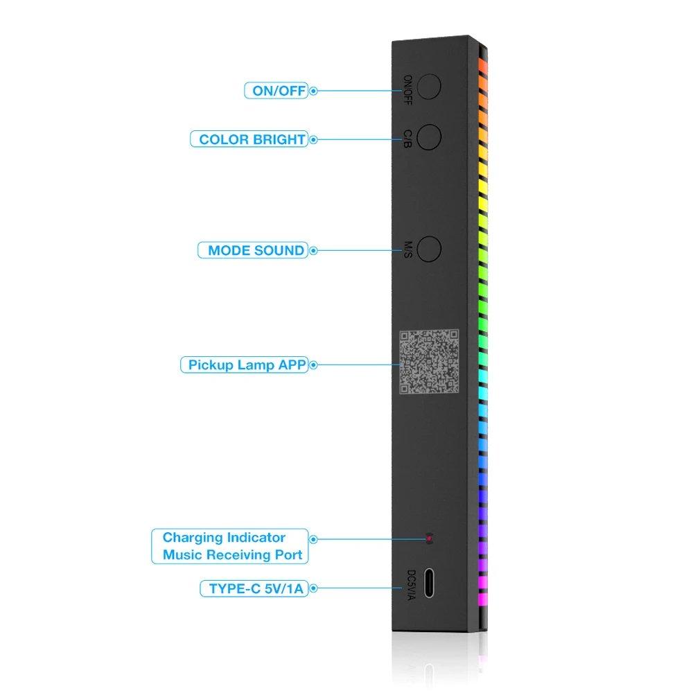 • [Применимые варианты] Являетесь ли вы музыкальным продюсером, игровым проигрывателем или энтузиастом, вообразите... Когда вы включаете музыку, красочные горизонтальные огни прыгают с ритмом... Это, безусловно, поможет привнести атмосферу в студию! Вы можете положить его на стол, ПК, прикроватный столик или автомобиль, чтобы создать расслабляющую и захватывающую атмосферу.