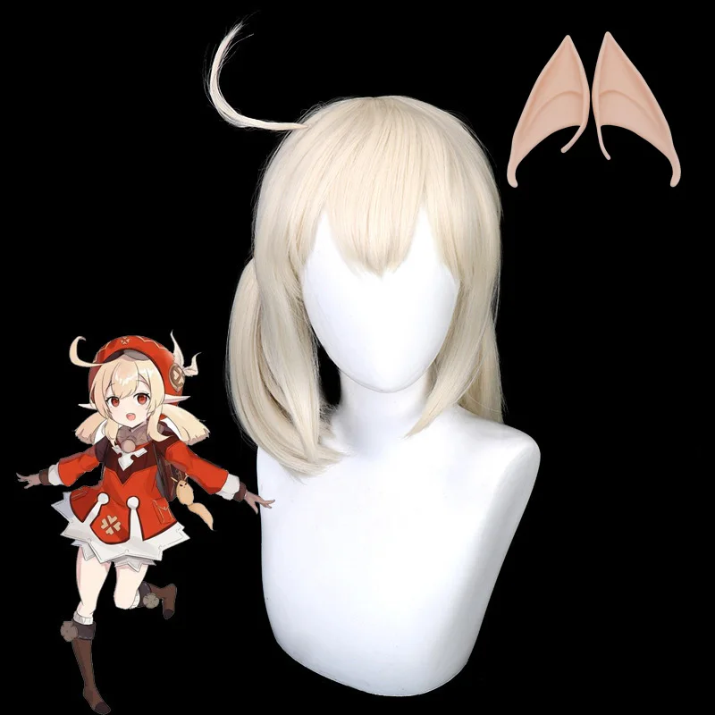 Парик для косплея Klee Genshin ударопрочный парик из аниме блонд с хвостом 55 см синтетические волосы искусственная кожа + шапочка для парика