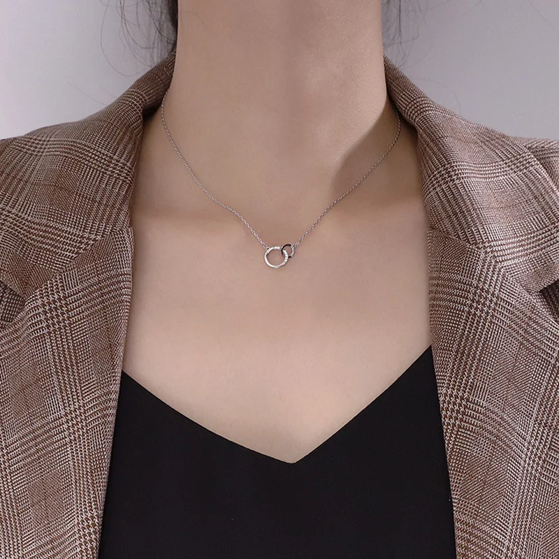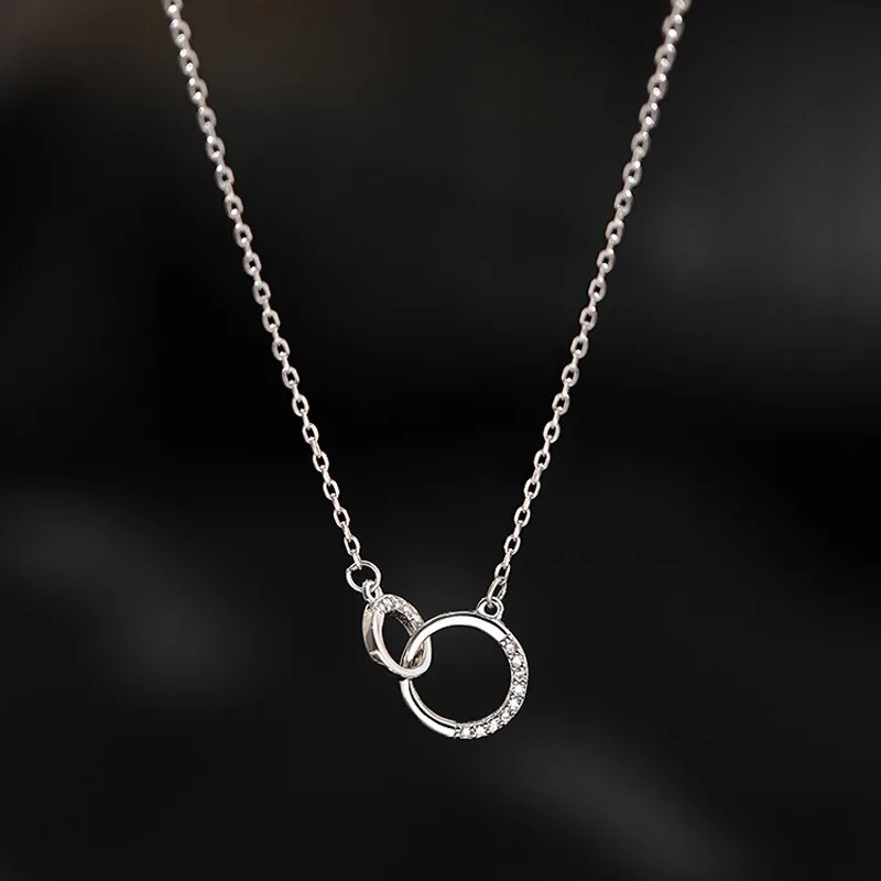 Модные женские серебряные ожерелья и подвески с двойным круглым цир...