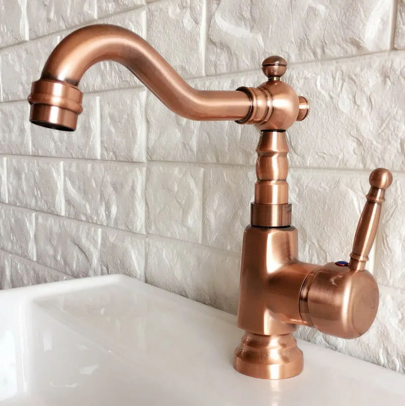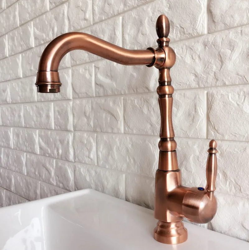 Поворотный на 360 градусов античный красный медный кухонный кран для раковины в ванной комнате смесители с одной ручкой крепление на раковину кран для горячей и холодной воды