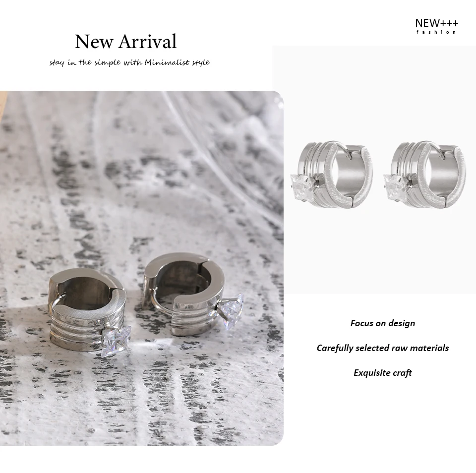 Серьги-кольца из нержавеющей стали с фианитом, 2022