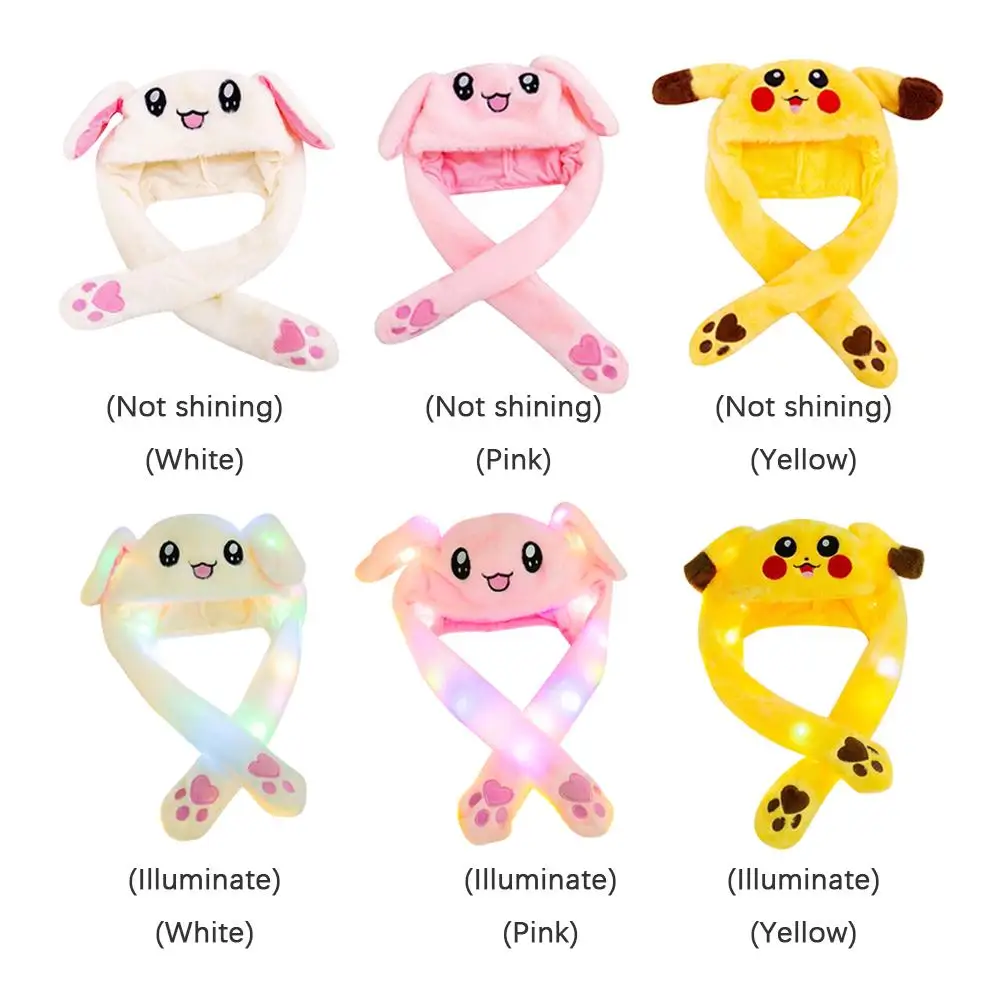 Детская светящаяся шапка с ушами кролика, подвижная шапка с перепрыгивающимися кроличьими ушами, светящийся кролик, забавная игрушка, игрушка с ушами кролика, подарок для девушки