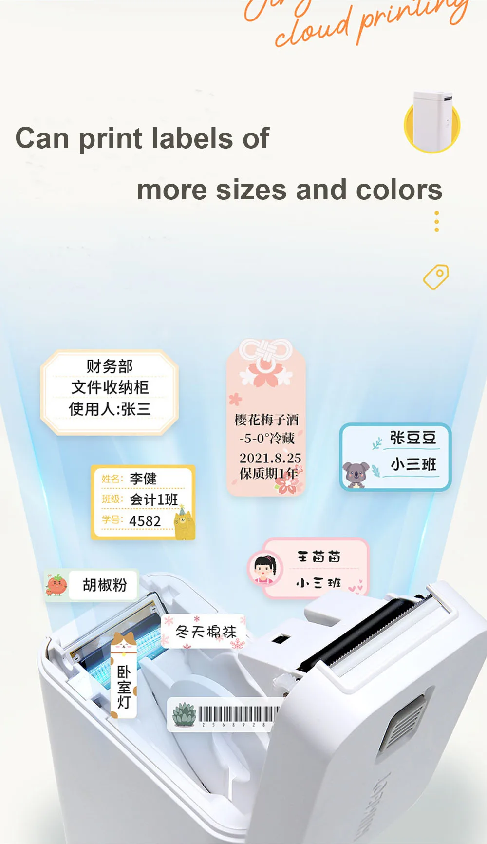 1. Беспроводной дизайн, поддерживает печать на большие расстояния.