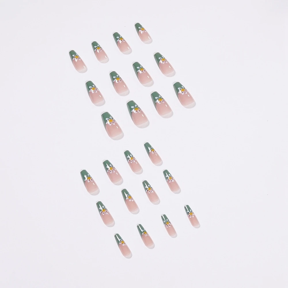 Накладные ногти в форме гроба, 24 шт., маленький белый цветочный ди...