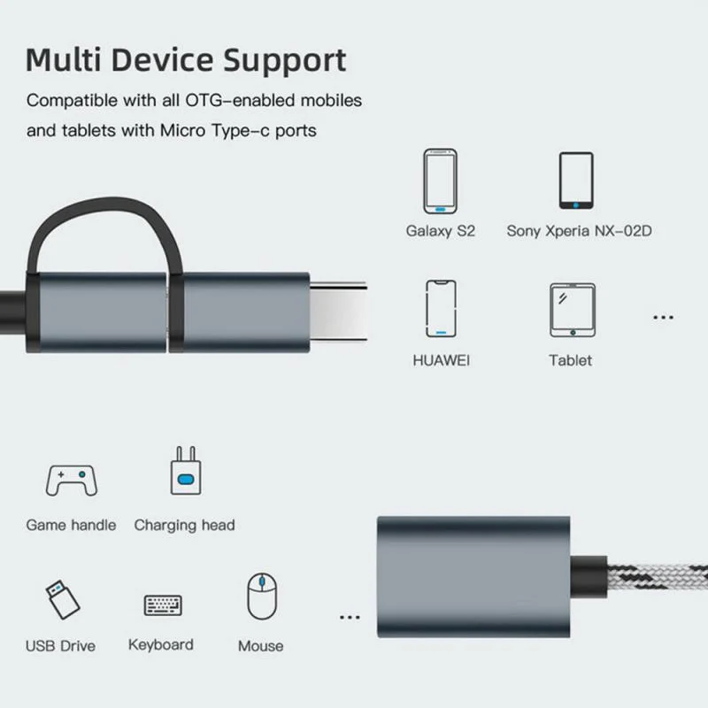 1. Этот адаптер Micro USB Type-C-USB 3,0 поддерживает большинство смартфонов, прост и удобен в использовании.