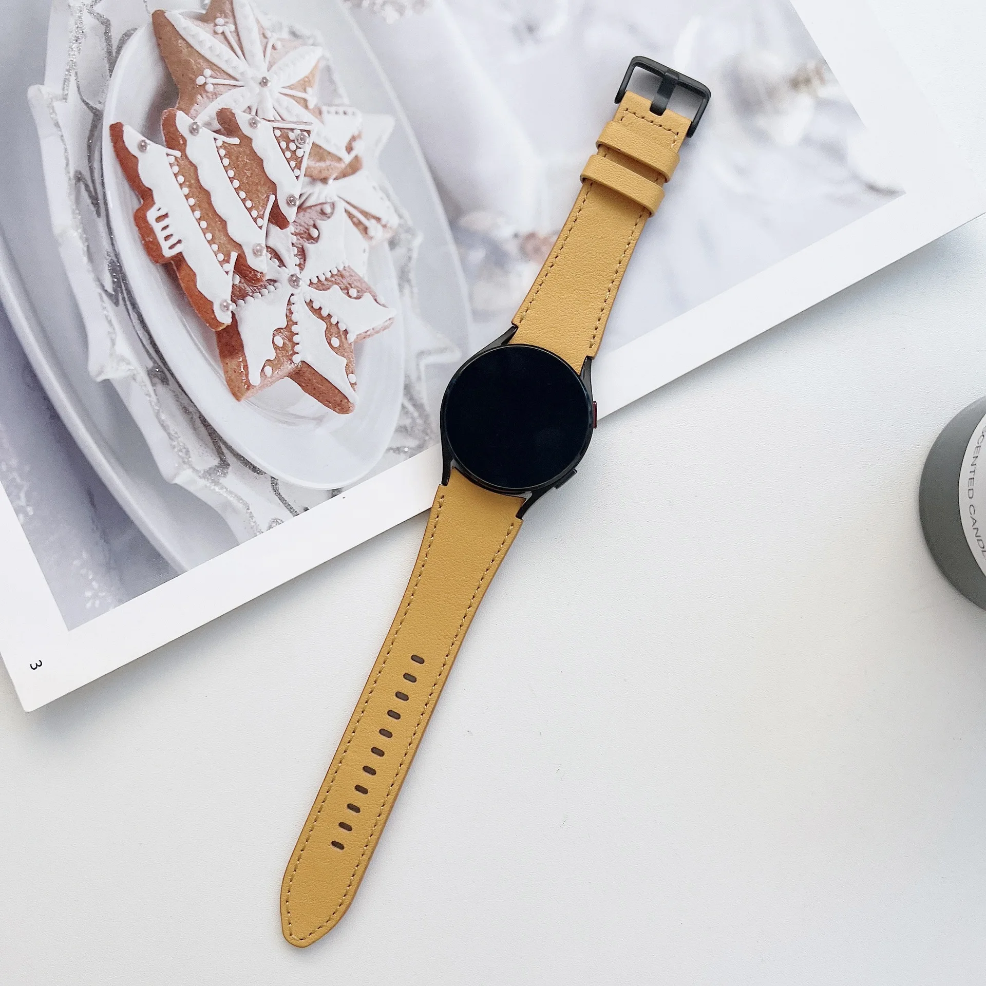 Ремешок кожаный для Samsung Galaxy Watch 4 classic, браслет без зазоров для смарт-часов 46 мм 42 мм 44 мм 40 мм