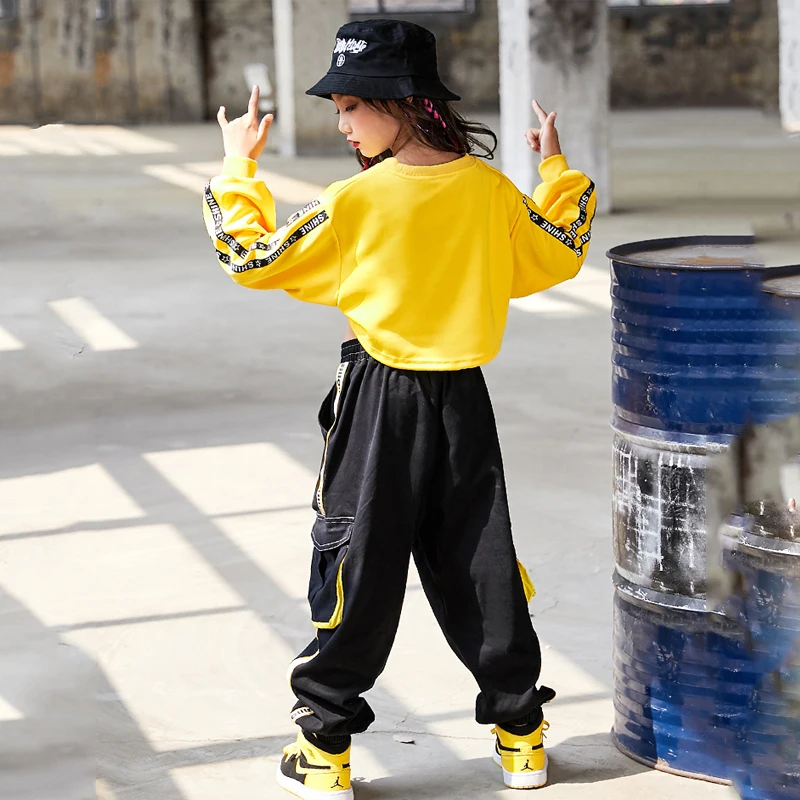 Детская одежда в стиле хип-хоп, костюм для уличных джазовых танцев для девочек, детская одежда для бальных танцев, одежда для сцены и Rave DQS352