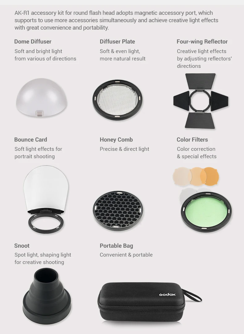 Набор аксессуаров Godox AK-R1 с круглой головкой, для вспышки Godox...