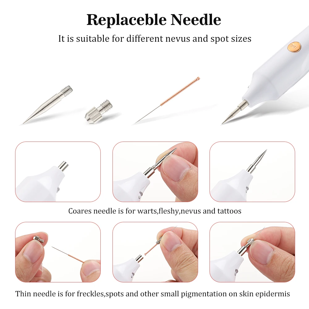 1.Используя технологию карбонизации ионизации, микрокомпьютерный контроль, физическое Удаление родинок, безопасно и быстро разбавляет меланин, восстанавливает безупречную кожу,