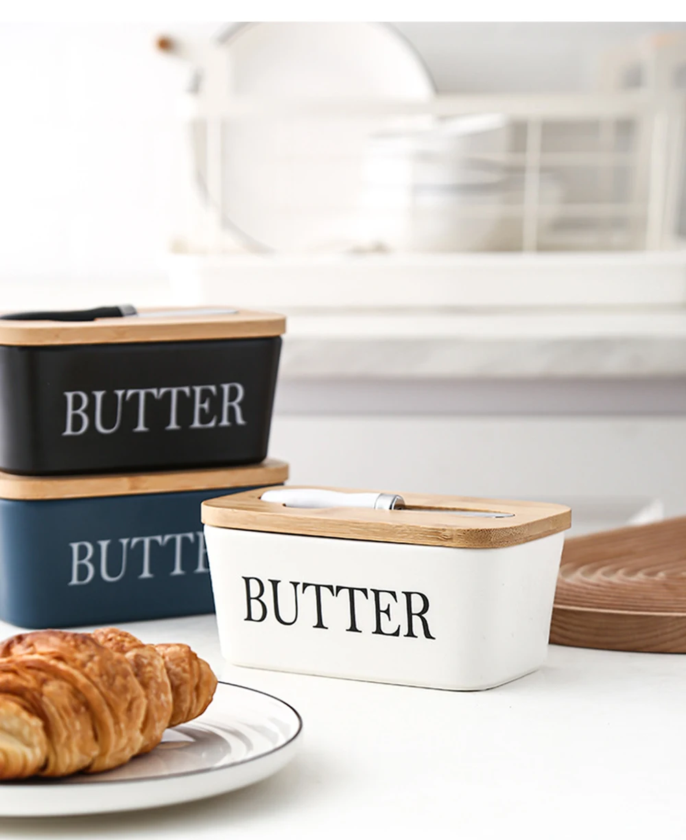 Герметичная коробка для масла в скандинавском стиле керамическая тарелка для масла с крышкой и ножи Набор лоток для хранения сыра контейнер коробка