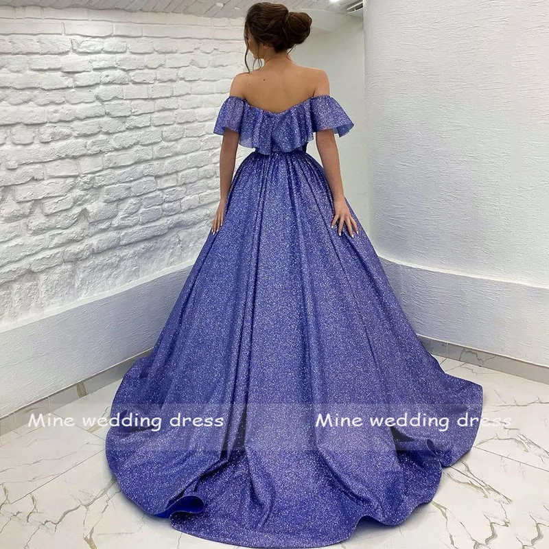 Женское вечернее платье с открытыми плечами, блестками и рукавами-фонариками