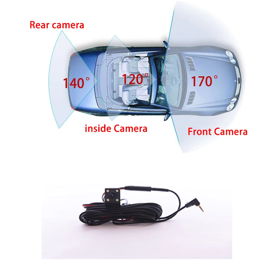 Запись внутри и снаружи автомобиля, три камеры обеспечивают безопасность вождения, а камера внутри автомобиля записывает настроение путешествия.