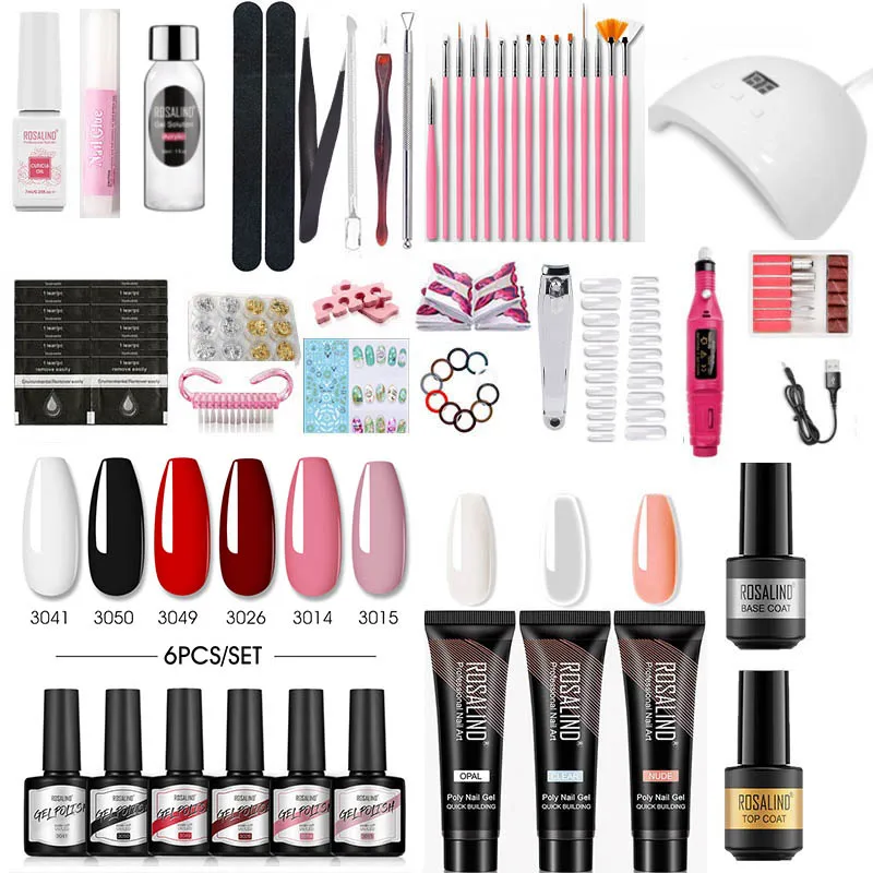 Набор гель-лаков для ногтей ROSALIND светодиодный лампой для ногтей Полупостоянный Гибридный лак для ногтей инструменты для дизайна маникюра наборы для маникюра