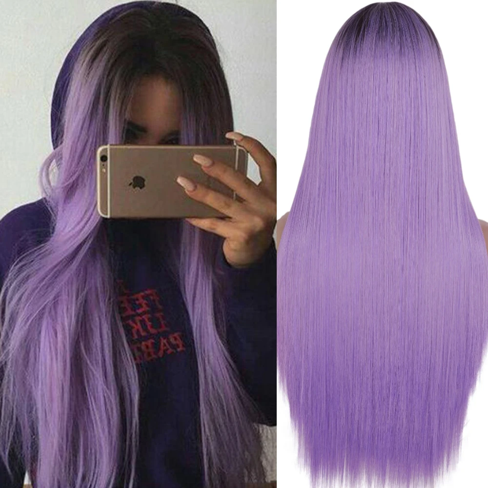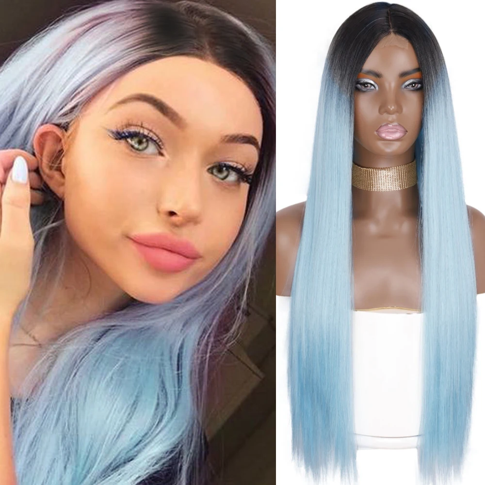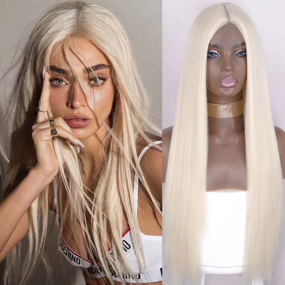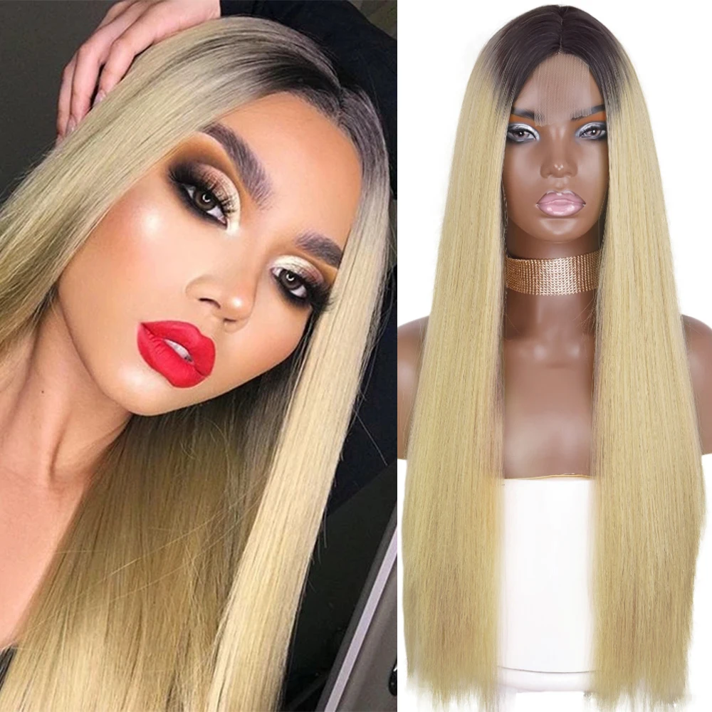 Синтетические парики AZQUEEN для женщин, длинный прямой светлый парик, натуральный парик средней части, термостойкий волоконный парик естественного вида