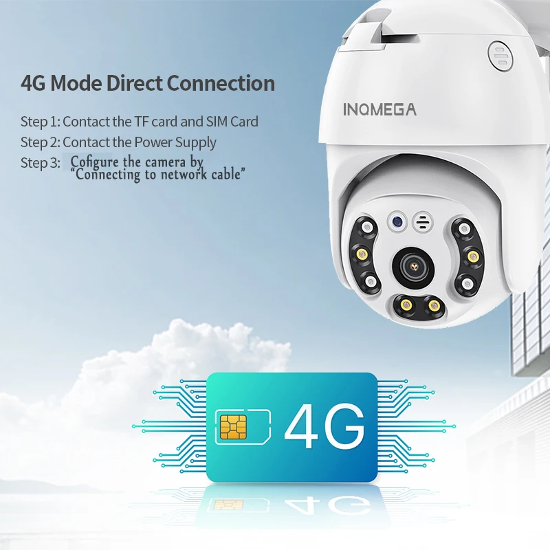 IP-камера INQMEGA, 4G, SIM-карта, Wi-Fi, 4-кратный цифровой зум, PTZ dispositif de scurit sans fil, avec carte SIM et Wifi, Vision nocturne infrarouge (30M), P2P