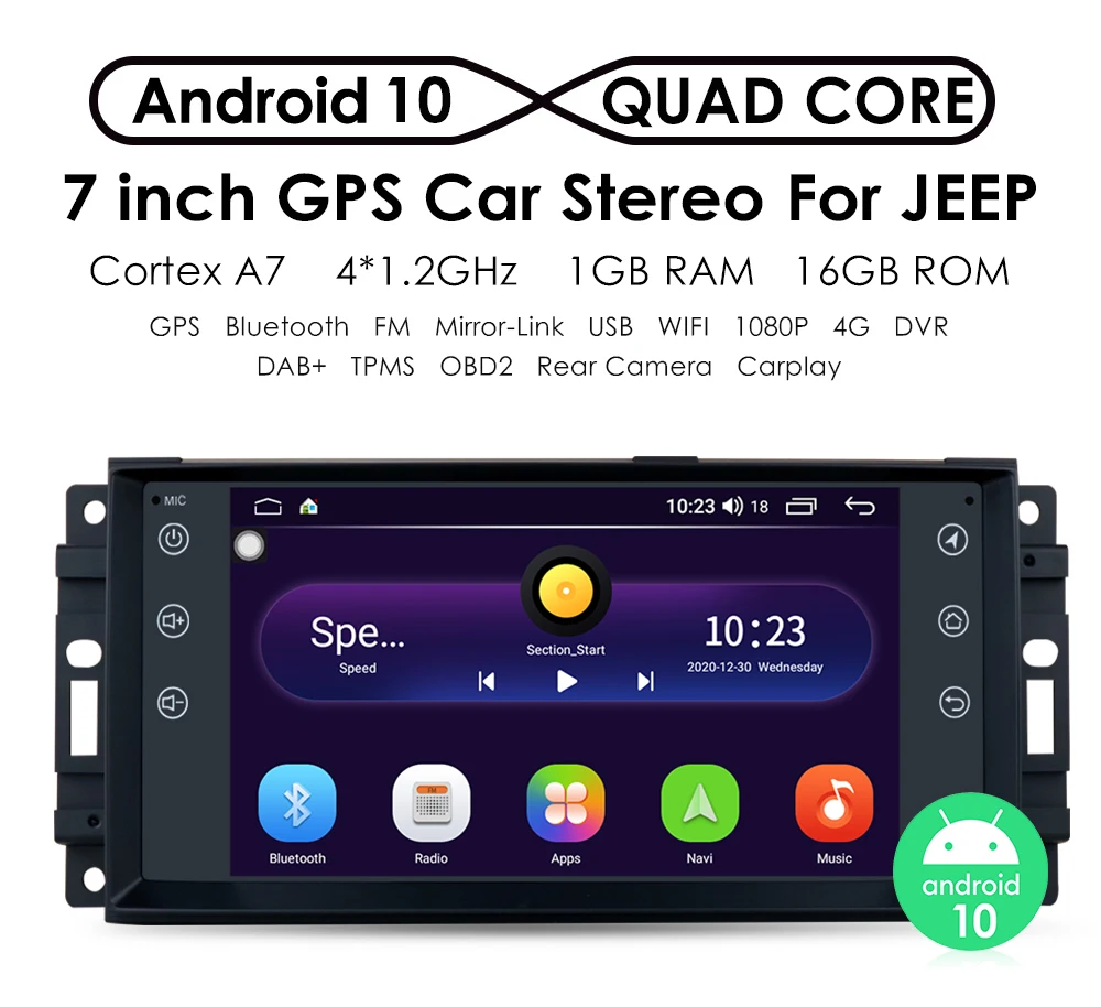 Автомобильный радиоприемник Carplay RDS, мультимедийная стереосистема на Android, для Jeep Grand Cherokee Commander, Wrangler, Dodge Patriot, Chrysler Journey, USB, 7 дюймов