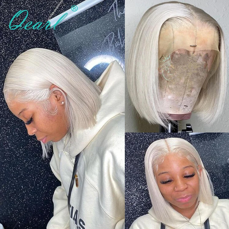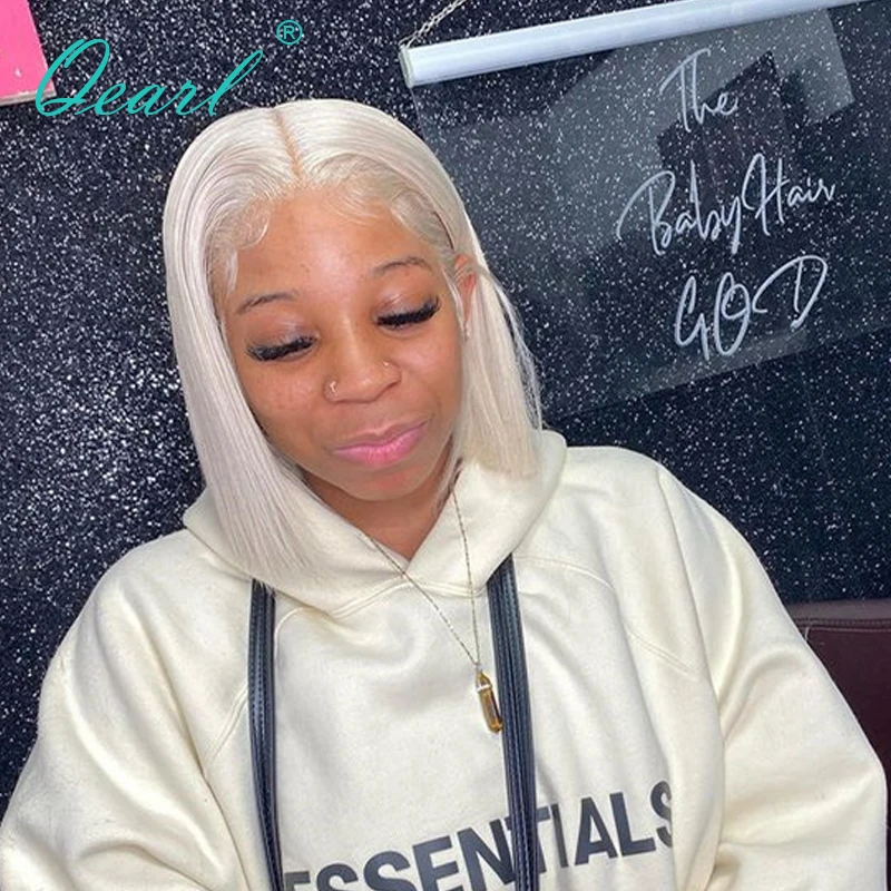 Парики из натуральных волос для женщин, короткий, на шнуровке спереди, парик со светлыми, прямыми на шнуровке спереди, без клея, 13x4, 613, Qearl