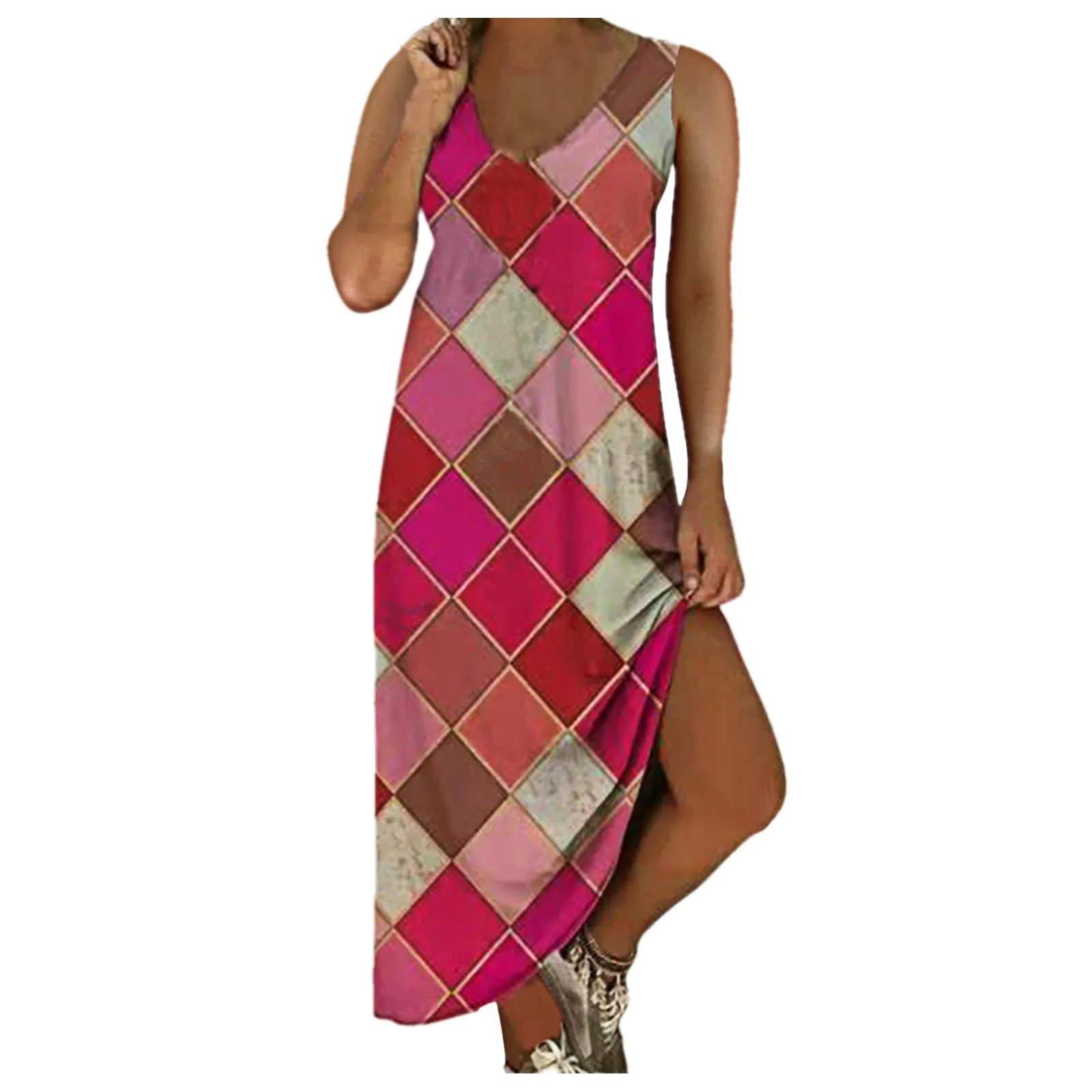 Женское Повседневное платье без рукавов с принтом в стиле пэчворк, Свободное длинное платье с круглым вырезом