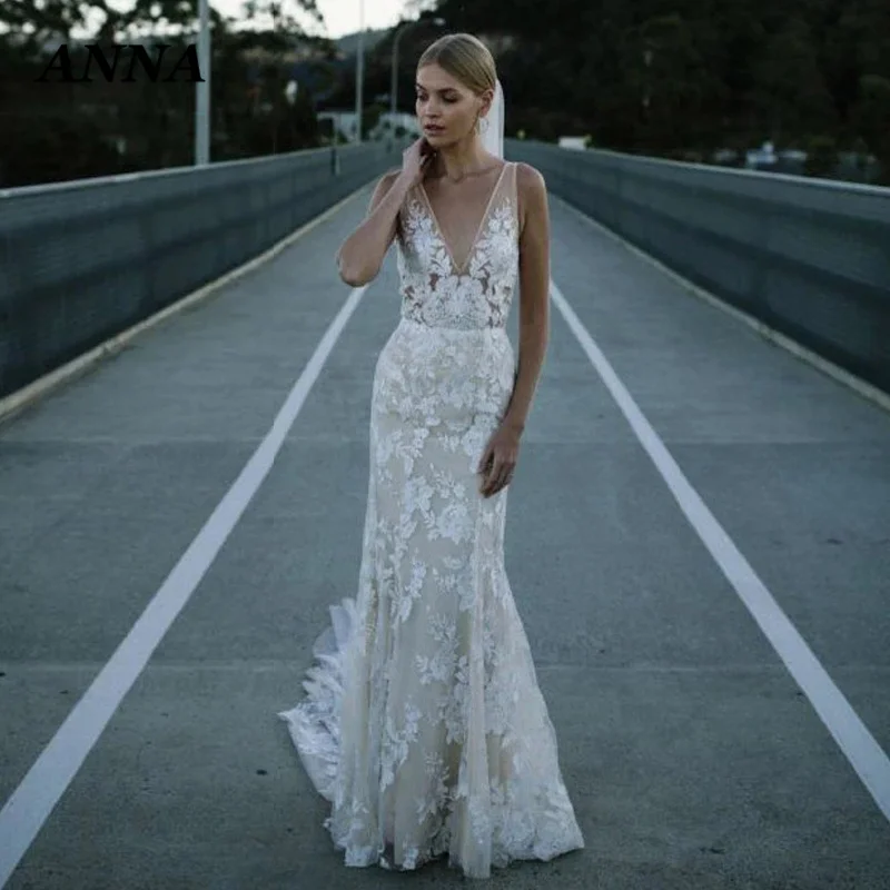 Свадебное платье Anna Beauty 2022 богемное платье с v-образным вырезом US $683,00