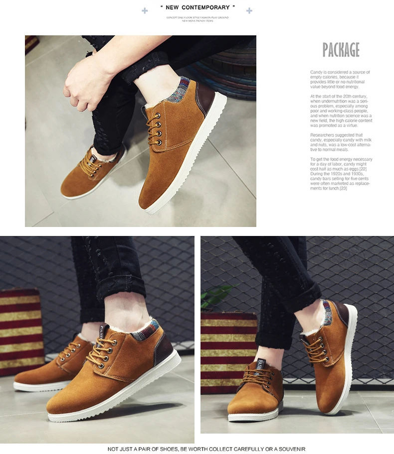 Мужские зимние повседневные теплые ботинки, плюшевые мужские кроссо...