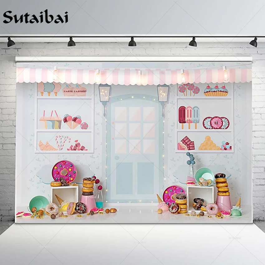Конфеты Бар Мороженое магазин праздник фотостудия фон баннер Сладкий Девушки пончик День Рождения Декор