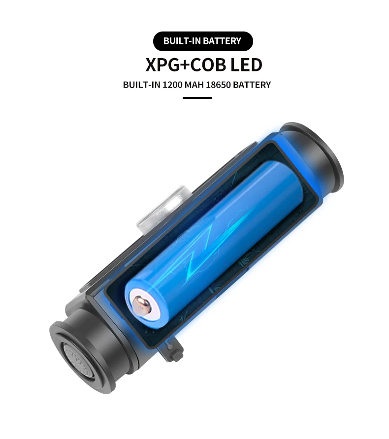 Спецификация:Материал: АБС-пластикМодель светодиодный: 1 * Q5 + 1 * COBЦвет изделия: черныйЦвет излучения: белыйРежим освещения: 2 режима (Длительное нажатие переключателя для включения функции датчика)Аккумулятор: встроенный аккумулятор 1200 мАч