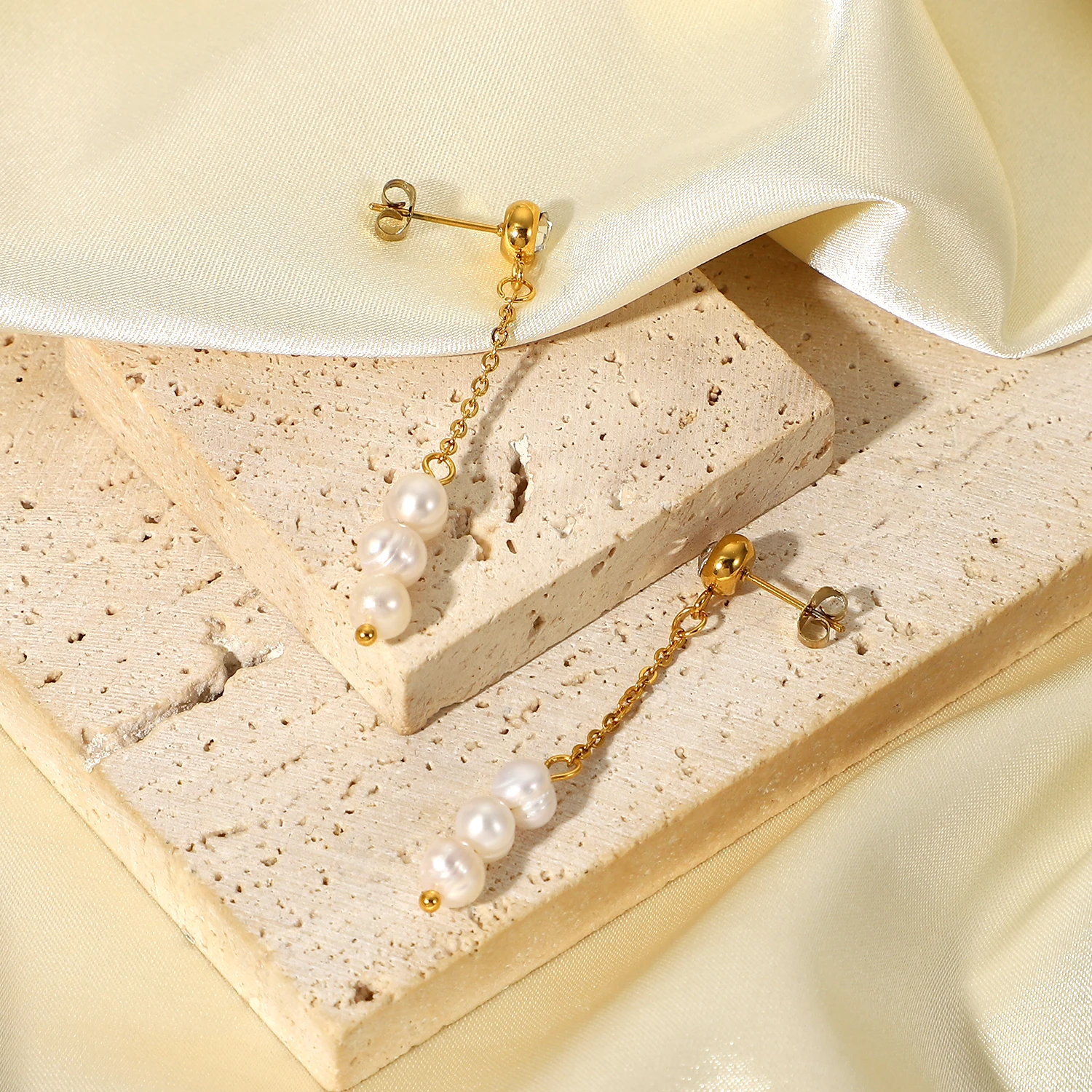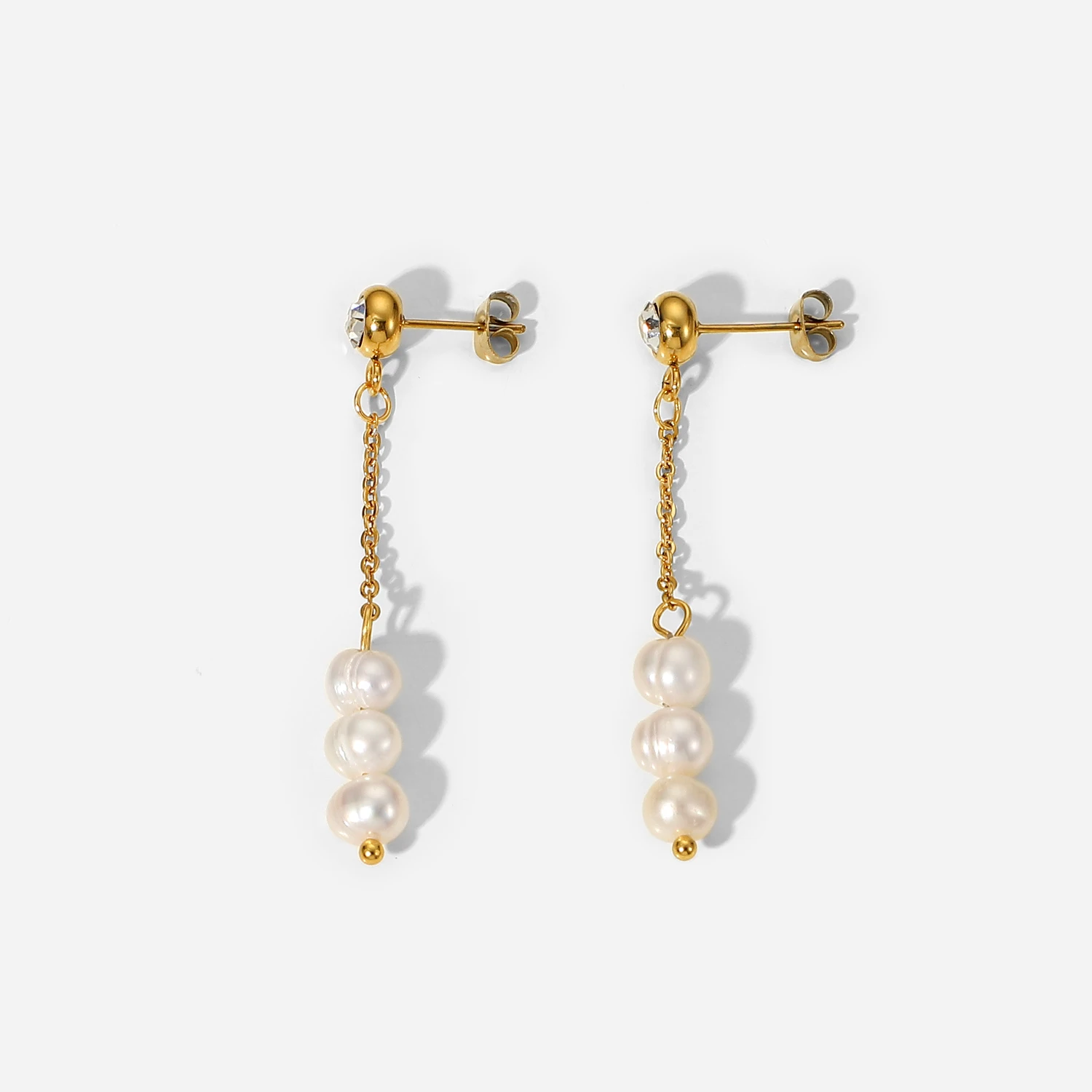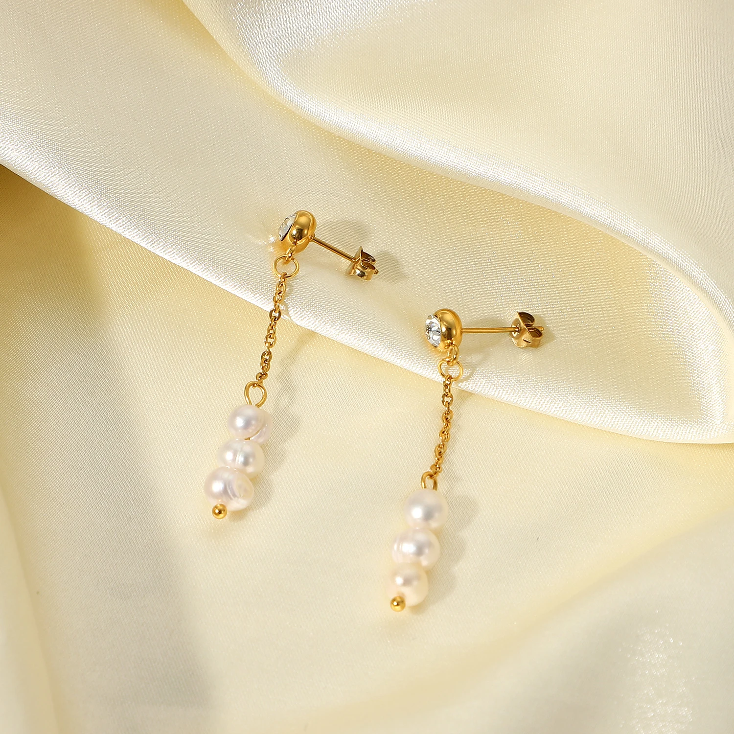 14K золотые треугольные серьги из нержавеющей стали с белым цирконием и длинной цепочкой, три жемчуга, серьги-подвески для женщин, вечерние ювелирные украшения, подарок