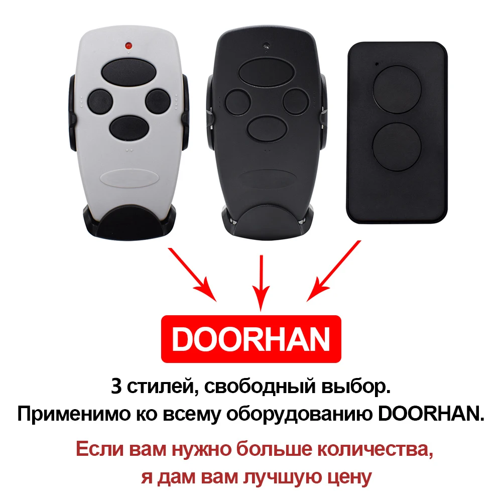 Все DOORHAN пульт дистанционного управления 433 МГц код прокаткиНапример:Премиум RC черный 4Передатчик Doorhan 2Передатчик Doorhan 4Передатчик Doorhan 2-proПередатчик Doorhan 4-proОбратите внимание, что наш пульт дистанционного управления является совместимым/заменяемым/клонированным пультом, а не оригинальным.