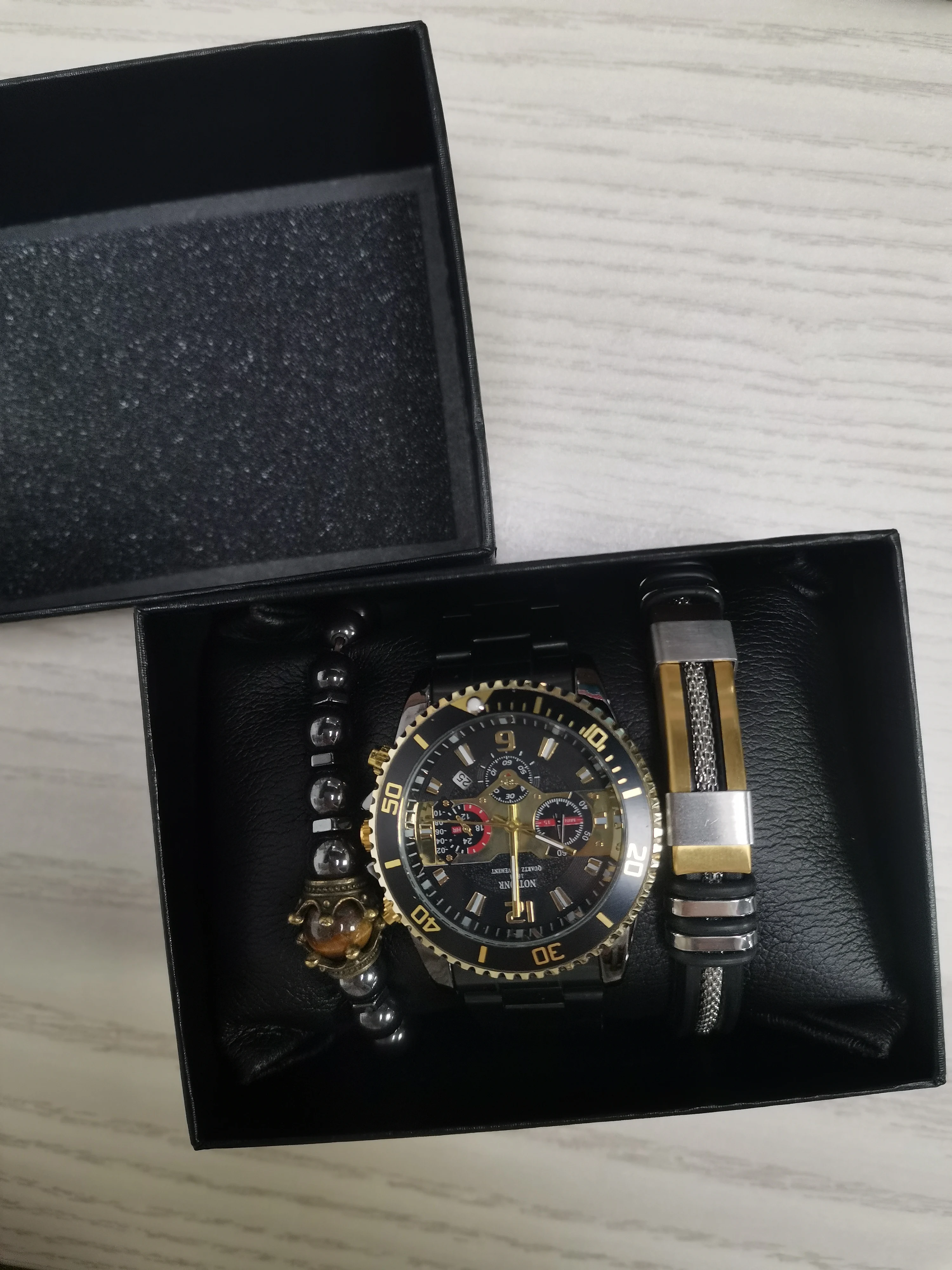 Я купил эти часы в качестве подарка для моего брата. Ему нравится, и когда я вижу, как он раскрывает подарок с улыбкой на лице, я знаю, что ему действительно нравится этот набор часов. Очень доволен этой покупкой, нравится!