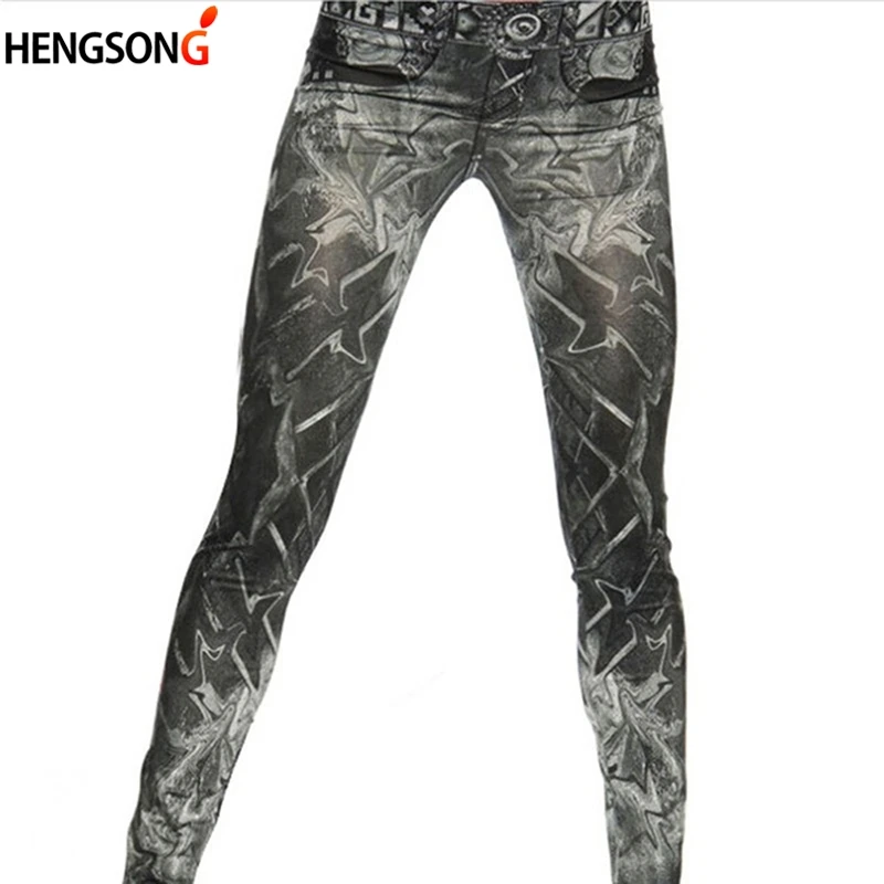 Женские леггинсы с имитацией джинсов, женские брюки с имитацией кар...