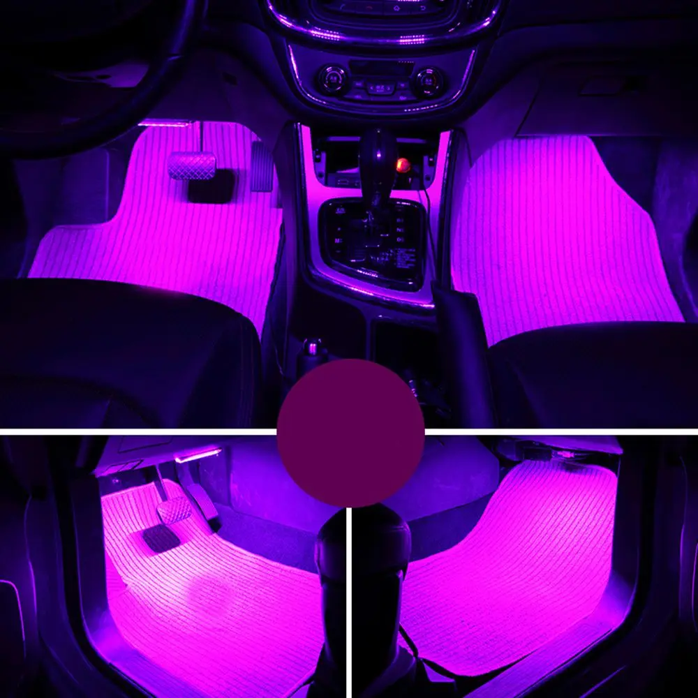 Разноцветные Автомобильные светодиодные лампы, 9 светодиодов, 2 в 1, для создания атмосферы в салоне, напольная полоса для прикуривателя, адаптер для прикуривателя, декоративная лампа