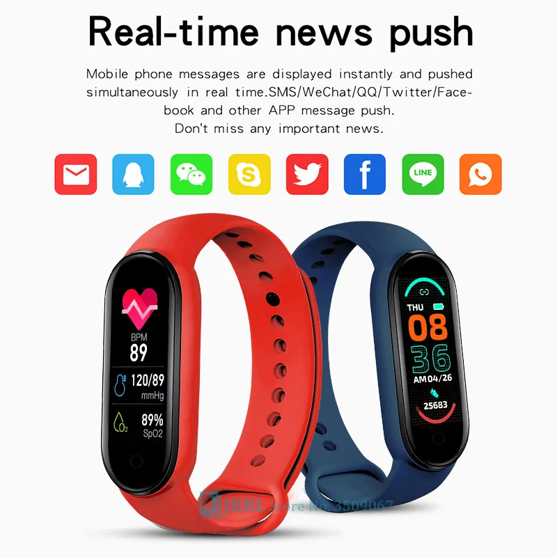 Смарт-браслет M6, спортивный фитнес-трекер, часы с пульсометром, во...