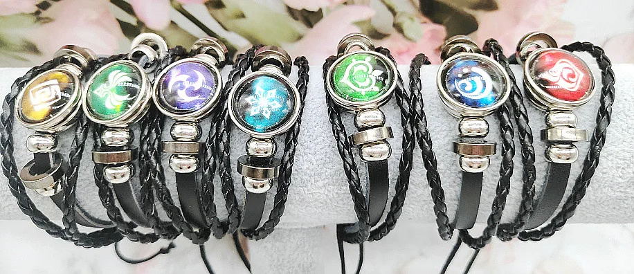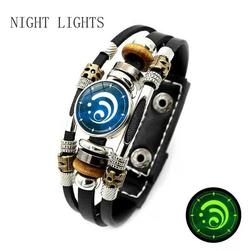 Светящийся кожаный браслет Genshin Impact, око Божие, водный ветер,...